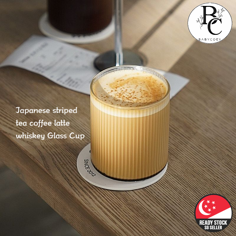 [SG]Japanese striped tea coffee latte whiskey glass cup Breakfast Milk Cup water heat-resistant 300ml/