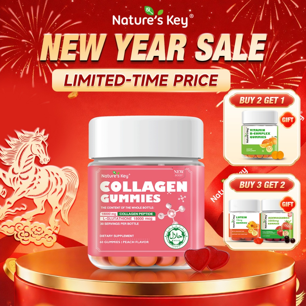 【BUY 2 Get Gift】Nature's Key Halal Collagen Gummies 18000mg Skin Elasticity Hydration Antioxidant Halal Collagen Supple