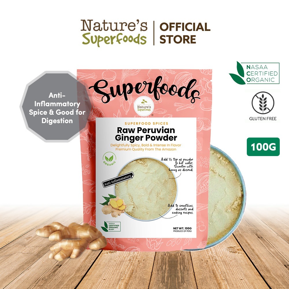 Nature's Superfoods Organic Raw Peruvian Ginger Powder Spice 100g l Delightfully Fragrant, Spicy l Boosts Digestion
