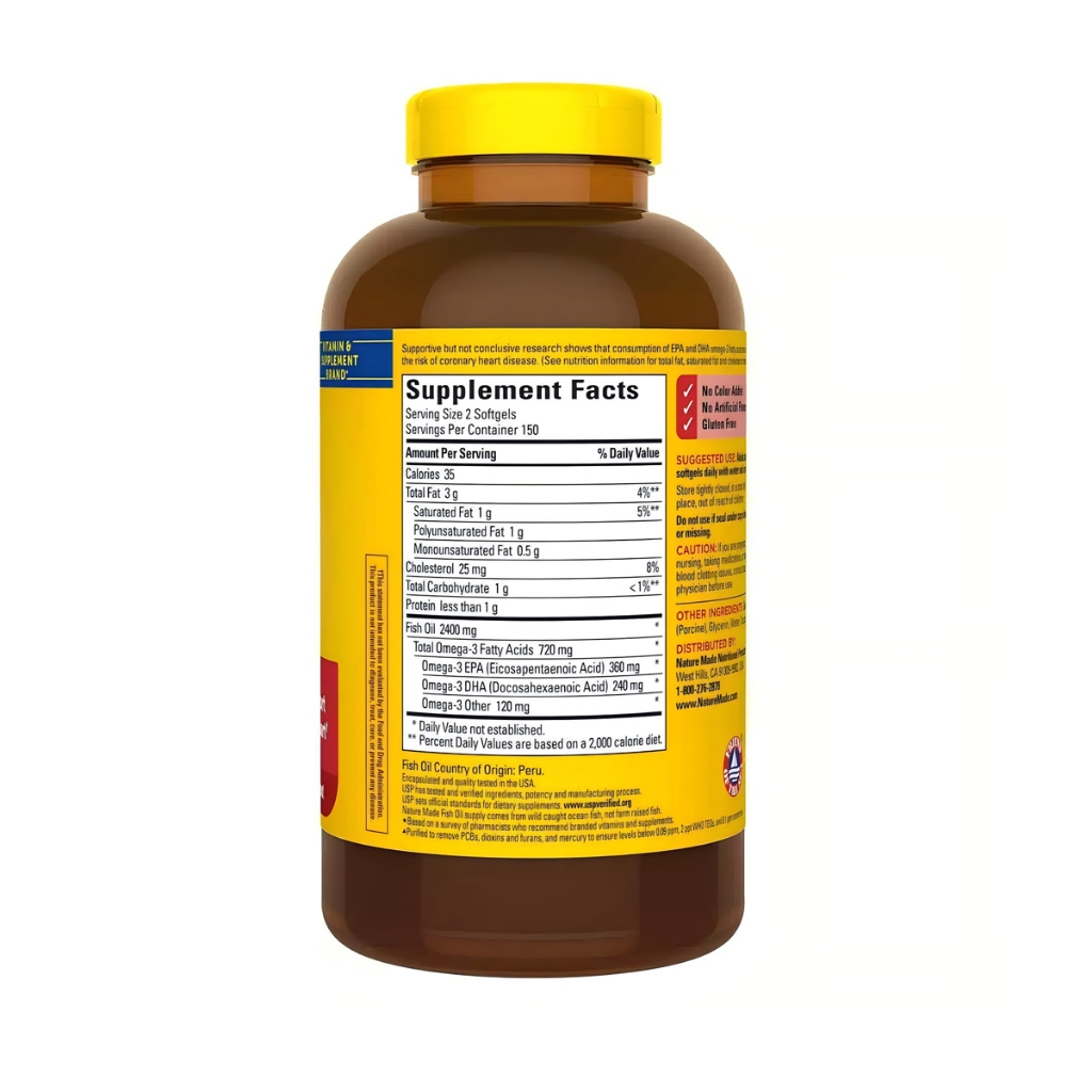 Nature Made Fish Oil 1200mg (EXP 2028) (360mg Omega-3) 300 Softgels NatureMade