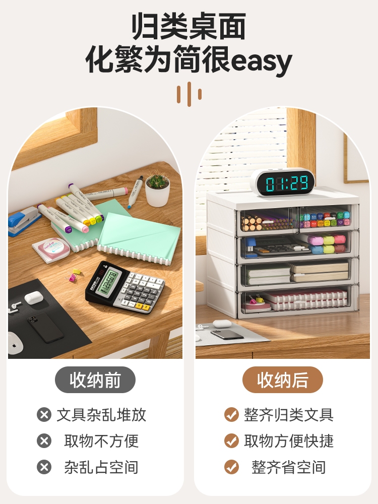 Nehem - Desk organiser large storage box can hold A4 paper desktop drawer organiser office student dormitories desks stationery drawer style storage box cosmetics sorting cabinet