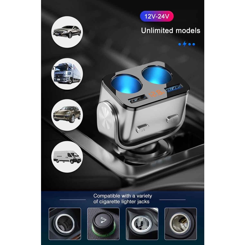 New 12V-24V Car Cigarette Lighter Auto Splitter Socket Dual USB Car Charger QC 3.0 Fast Charging With Voltage Display Switch