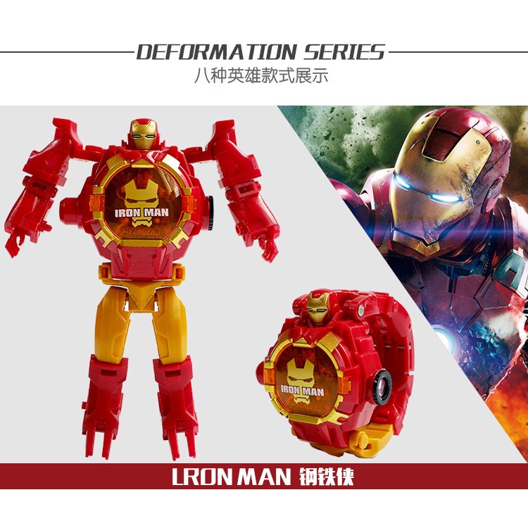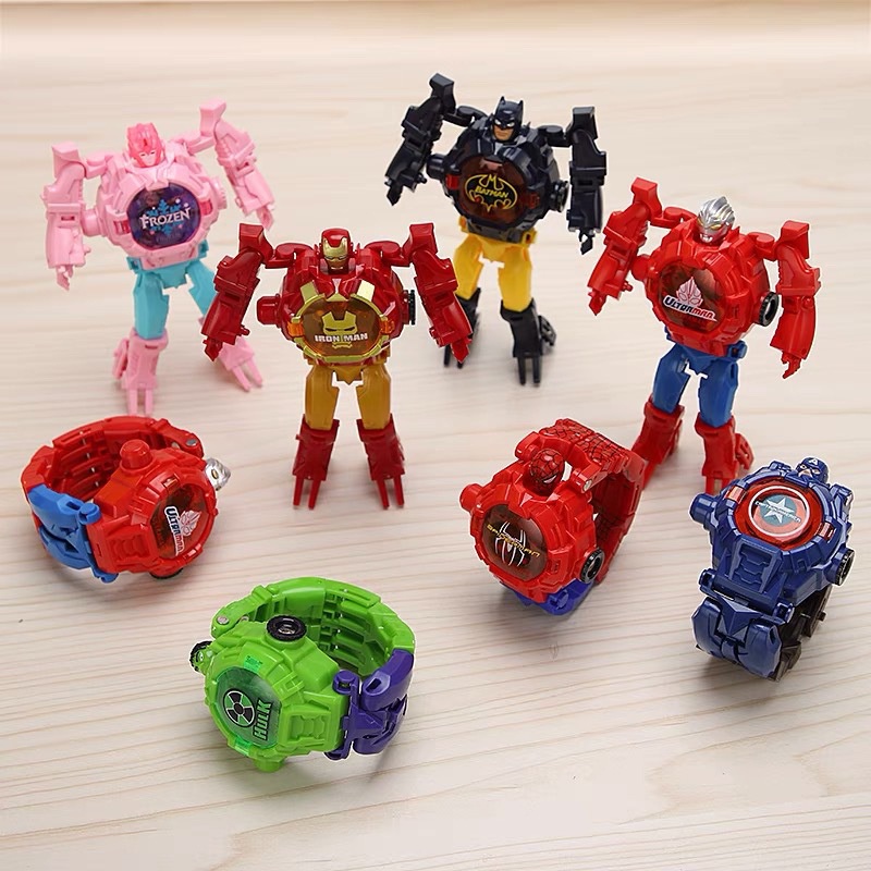 New 2in1 Projector Deformation electronic Watch Toy Children Watch Digital Avengers kids Robot Watch Spiderman IronMan Frozen Ultraman Watch Toy Kids Gifts