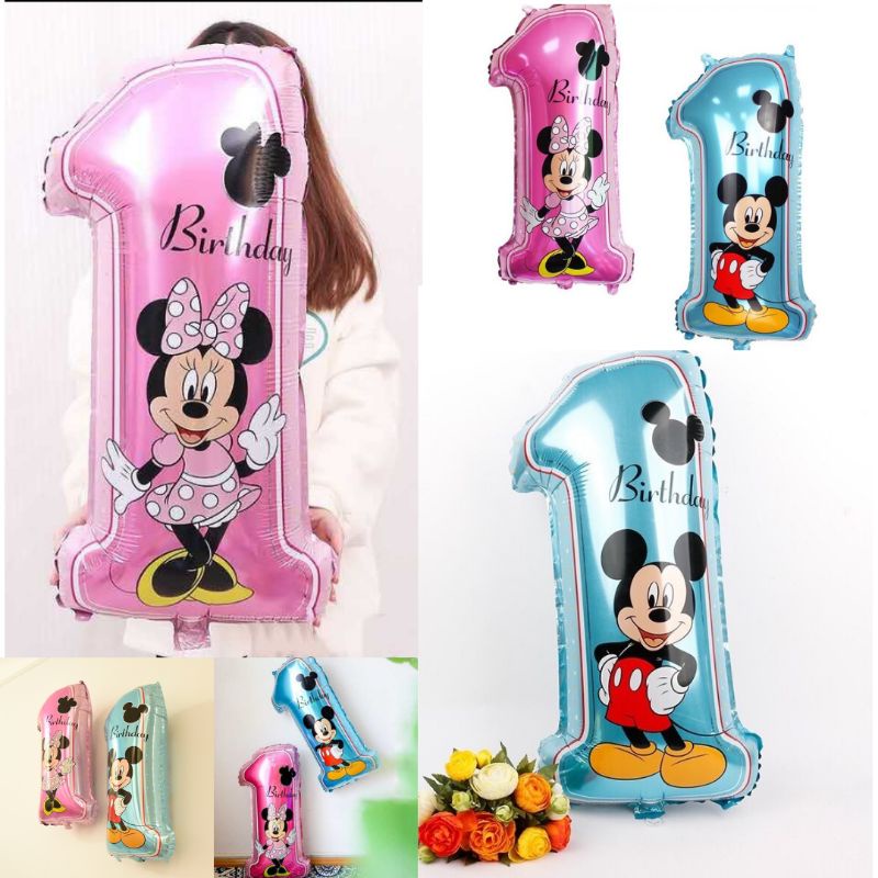 New 32 Inch Mickey Mouse Theme Decorative Digital Foil Balloons 1st Birthday Party Decoration Mickey and Minnie Child 1st Birthday Party Decoration Supplies