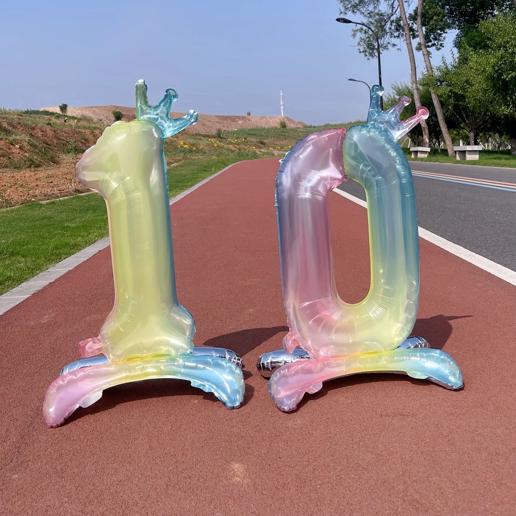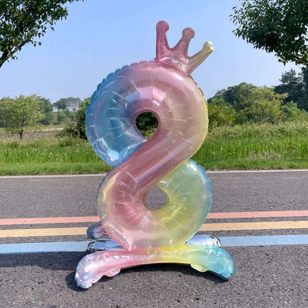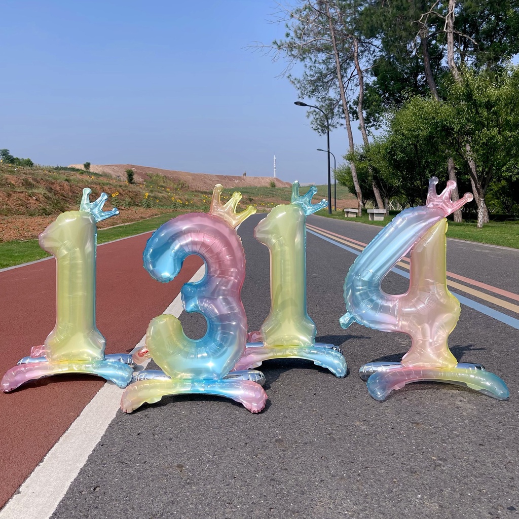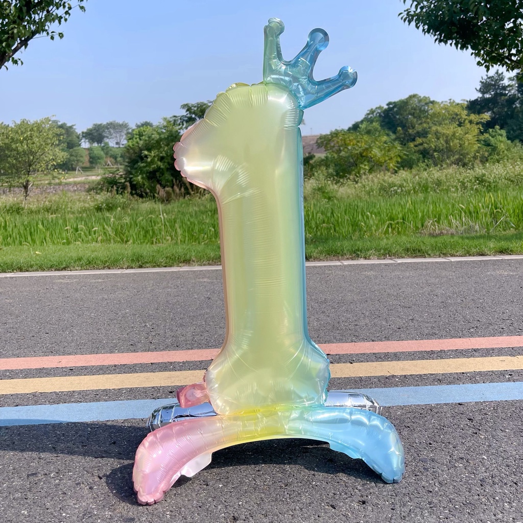 New 32Inch Colorful Standing Number Stand Foil Balloon Number 1 Balloons Crown Birthday Party Decoration
