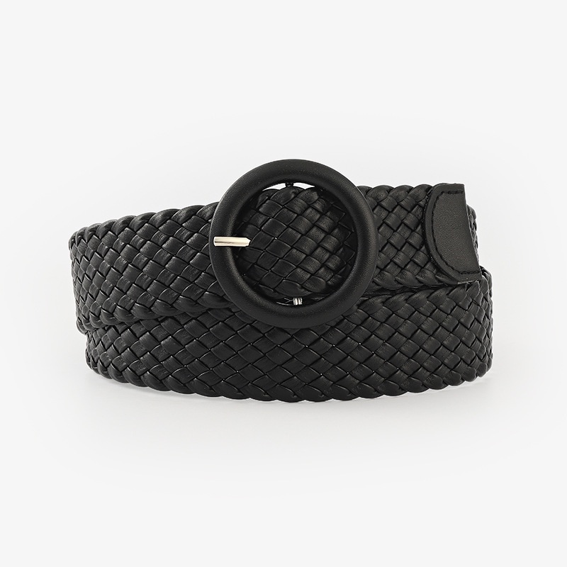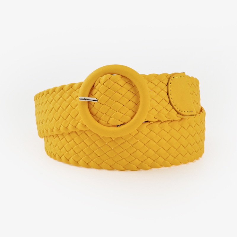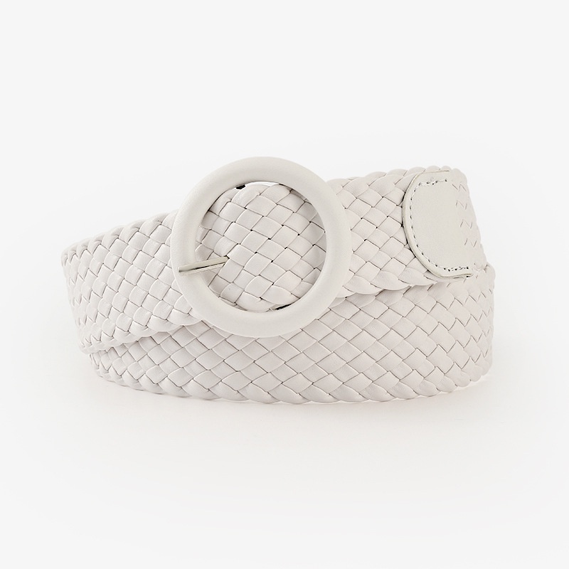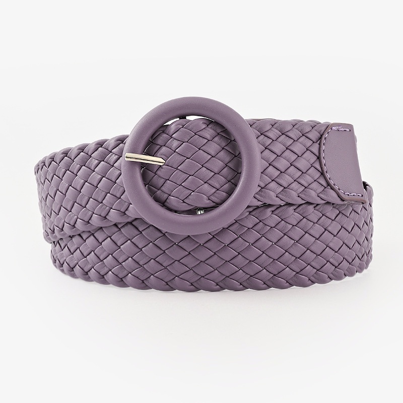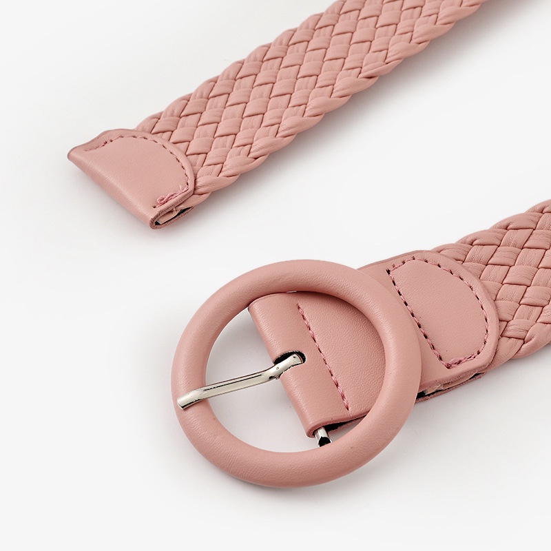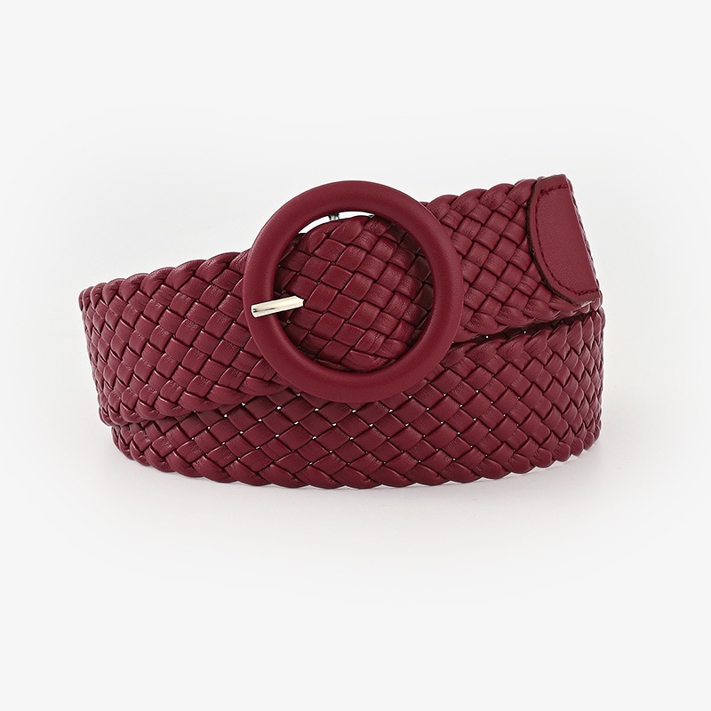 Fashion Candy Color Round Leather Buckle Wide Belt Versatile Clothing Decoration Braided Belt Women