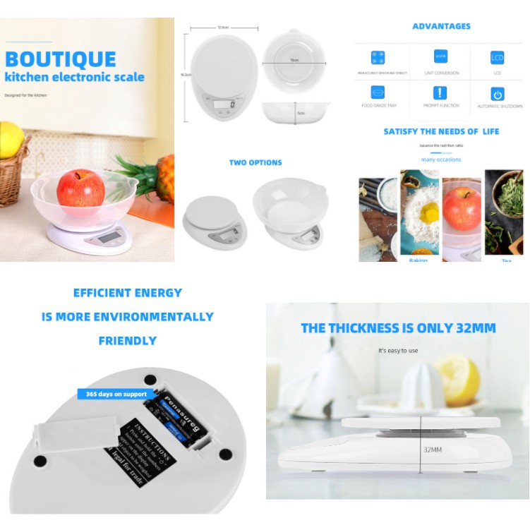New Kitchen Scale Electronic Digital Food Scale Portable Weighing Digital Nutrition Kitchen Scales 5000g/1g