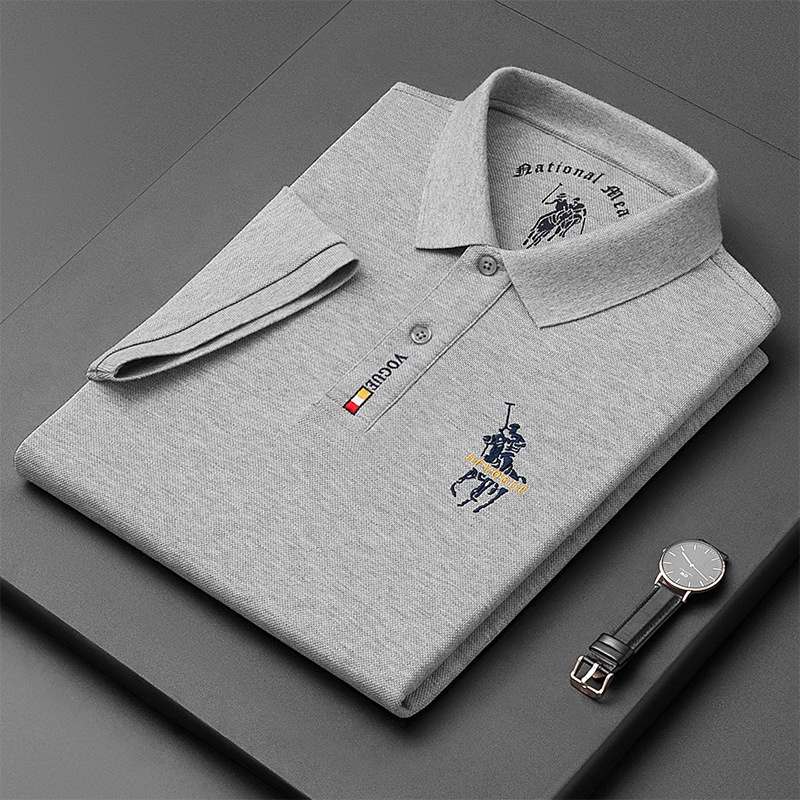 New Men's Embroidered Solid Color Polo Shirts Casual Business Short Sleeve Polo T Shirts Men's Tops 7 Colors Middle Age Fashion