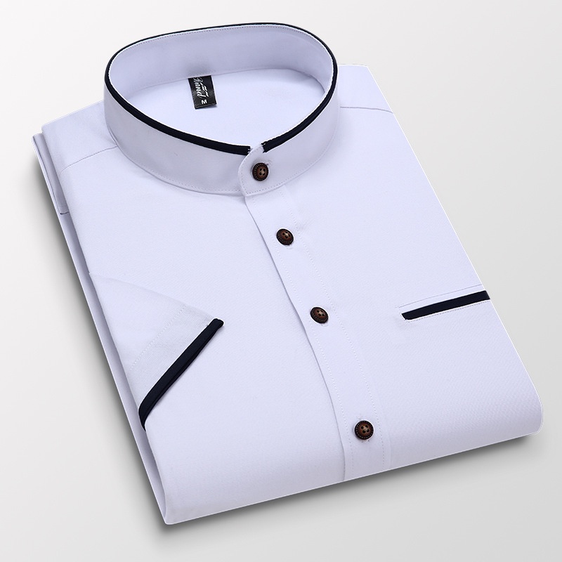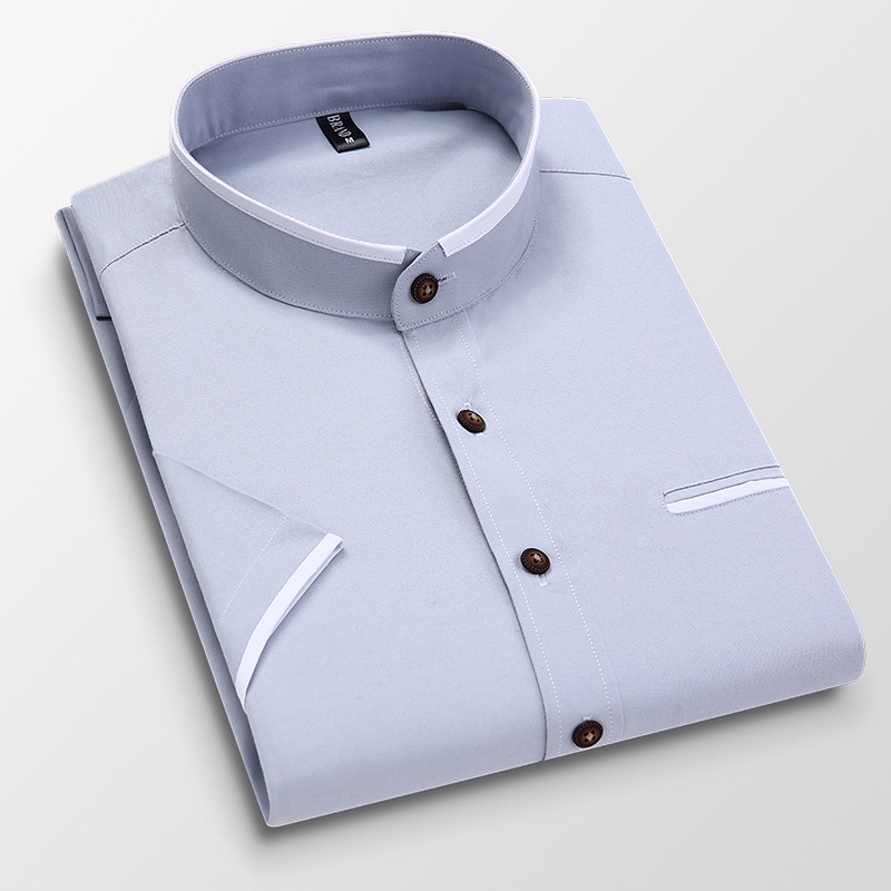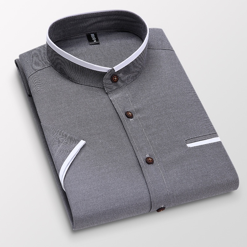 New Men Shirt Casual Slim Fit Formal Shirts Stand Collar Short Sleeve Shirts Office Business Shirt