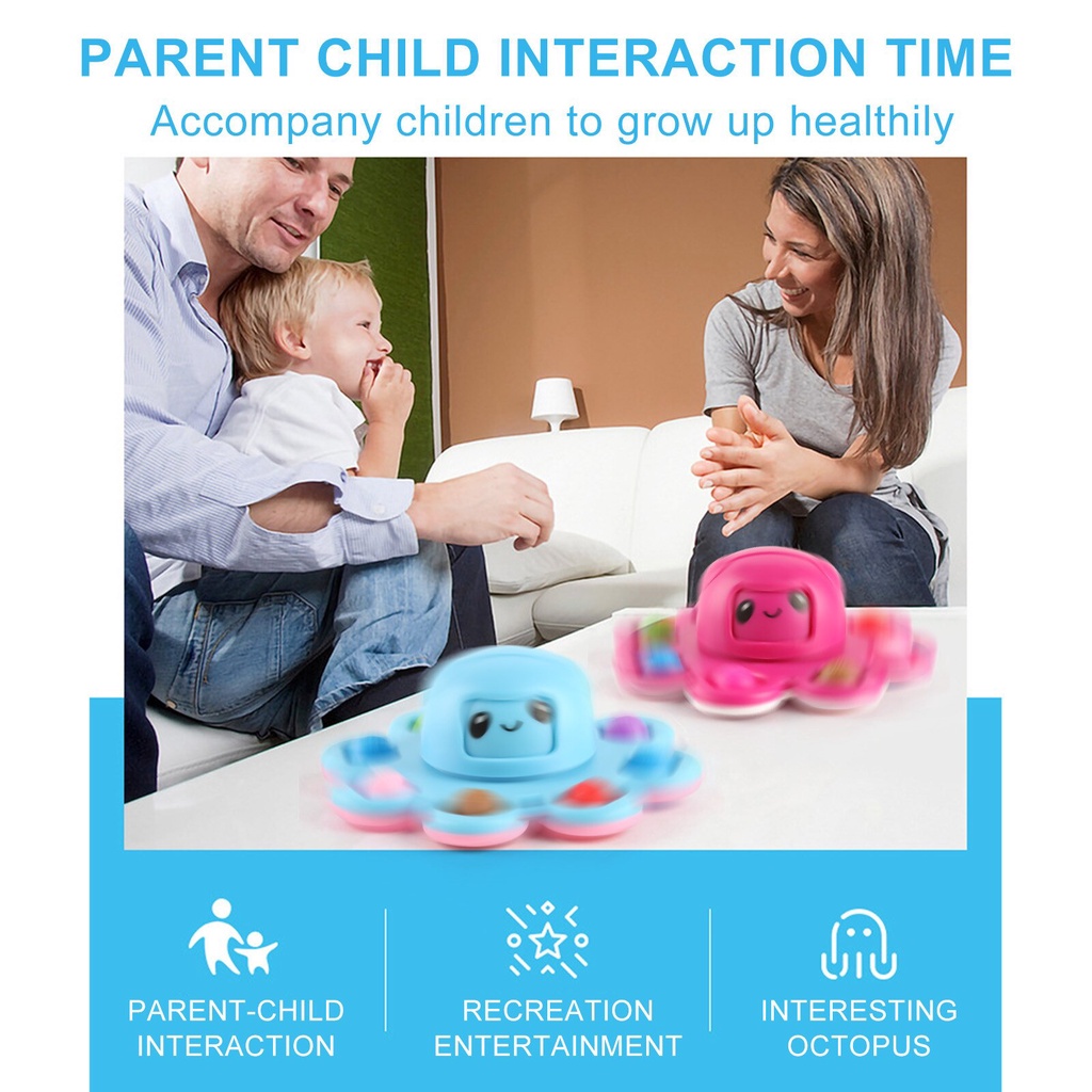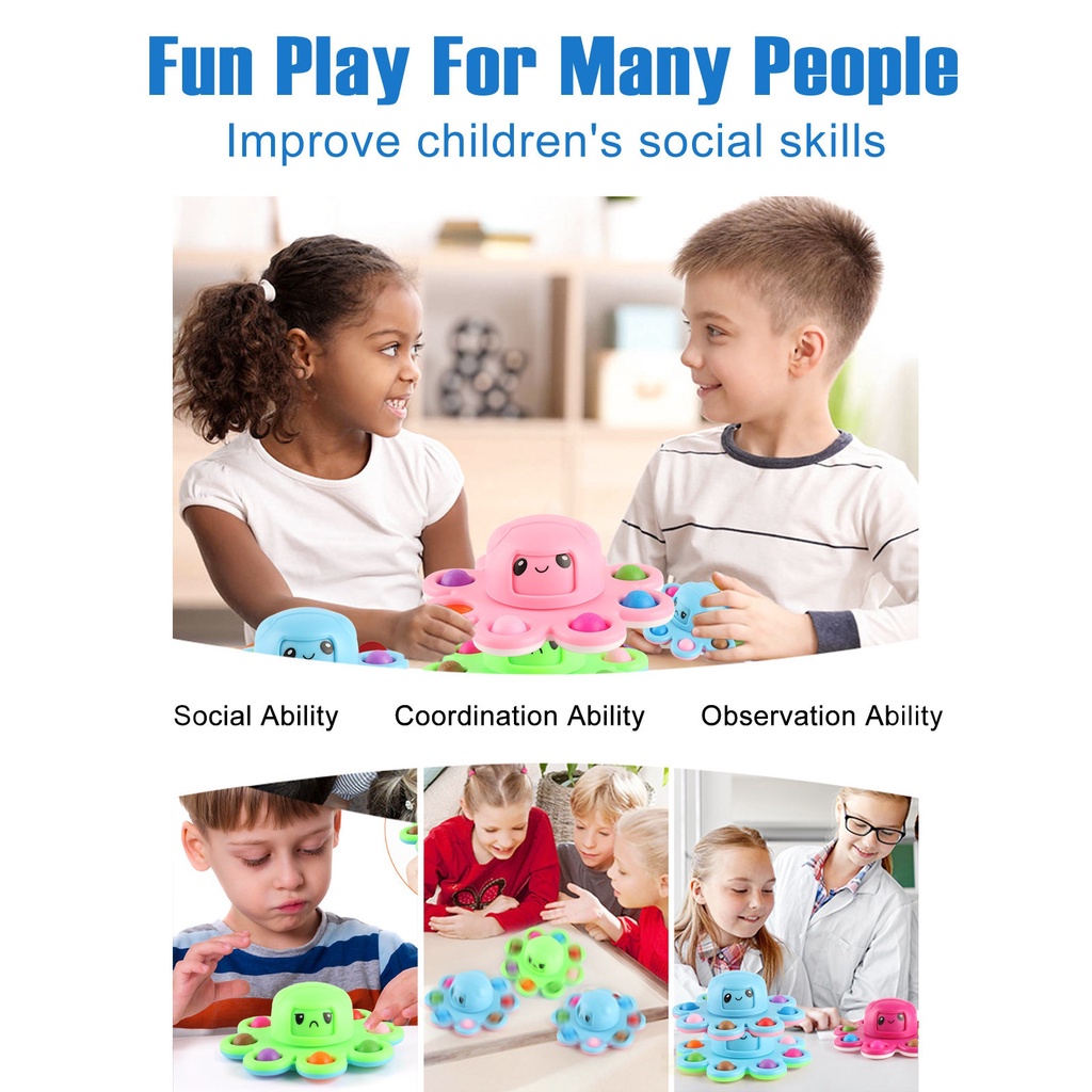 New Pop It Stress Relief Silicone Interactive Flip Octopus Change Faces Spinner Push Pops Bubble Spinner Fidget Toys
