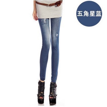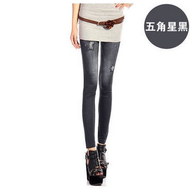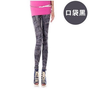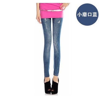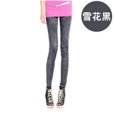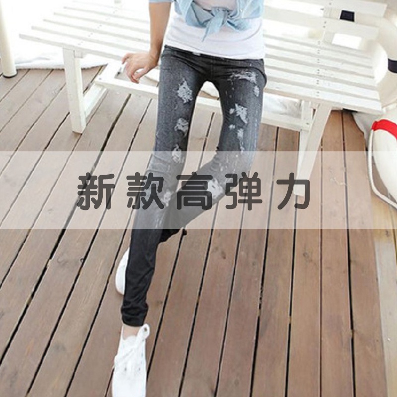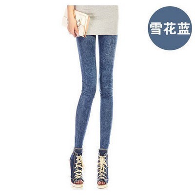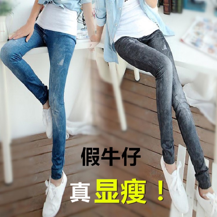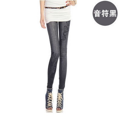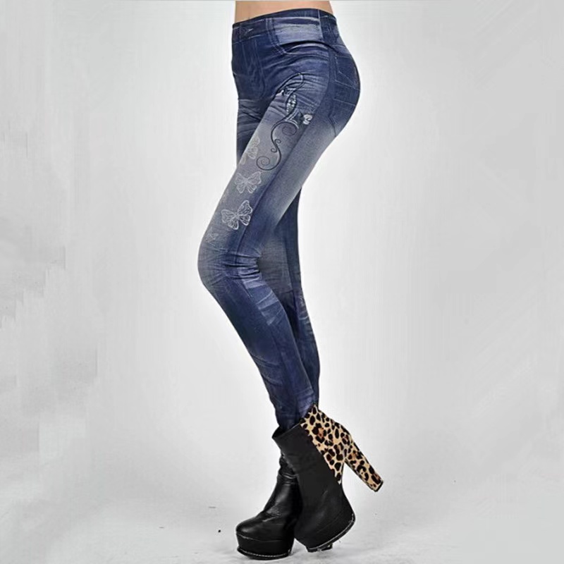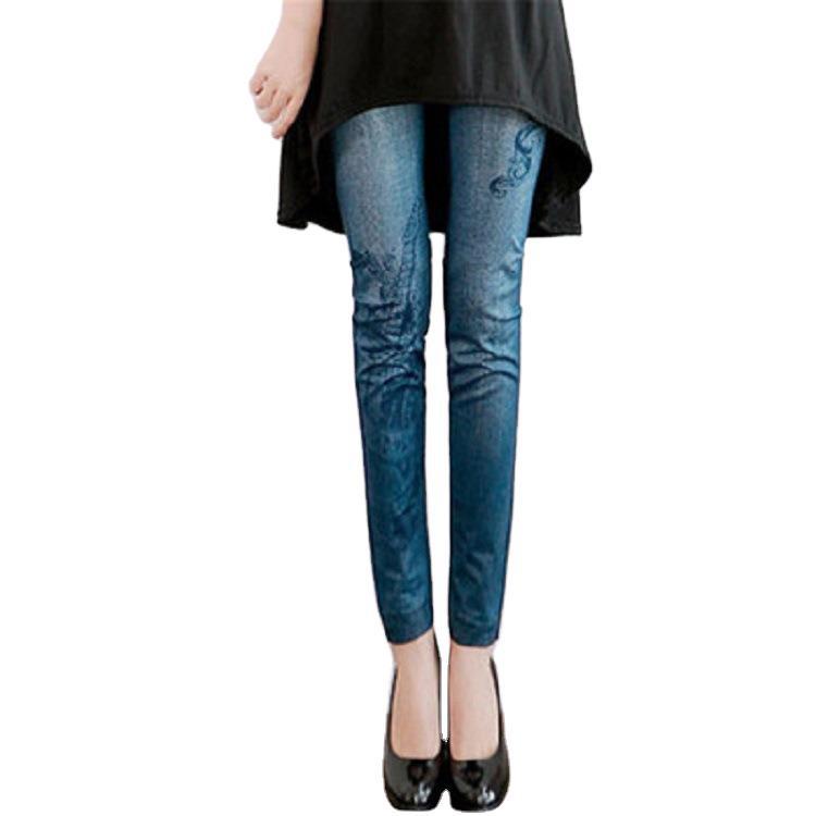 New Style High Elasticity Slimmer Look Thin Style Imitation Denim Leggings Large Size Ladies Spring Summer Style Printed Outer Wear Ankle-