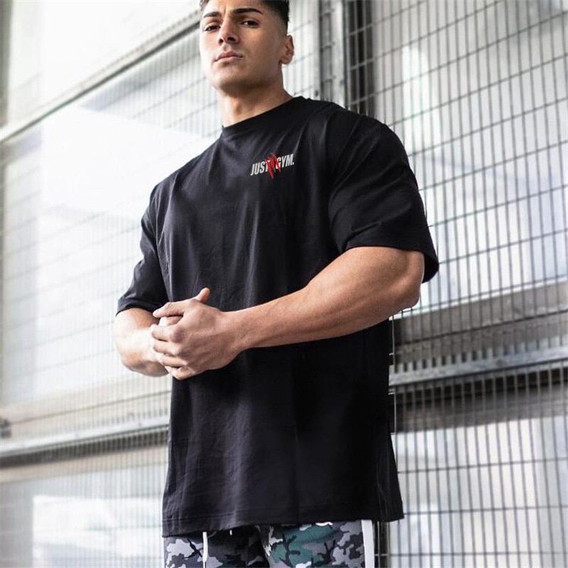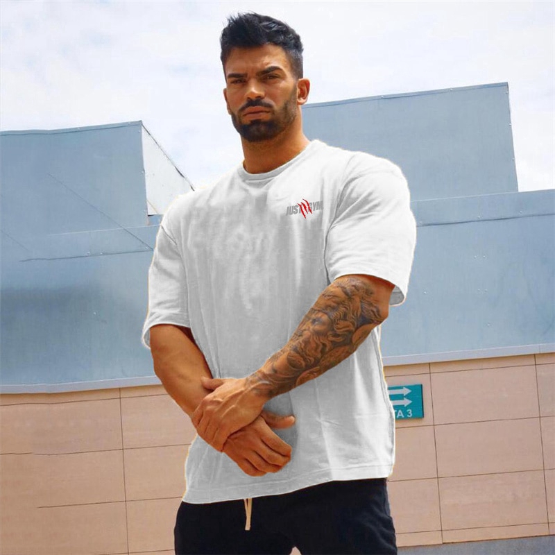 New Summer Oversized T shirt Men Gym Bodybuilding Fitness Loose Casual Lifestyle Wear T-shirt Male Streetwear Hip-Hop Tshirt