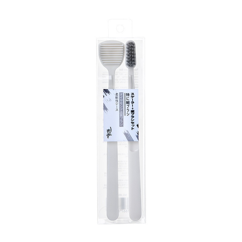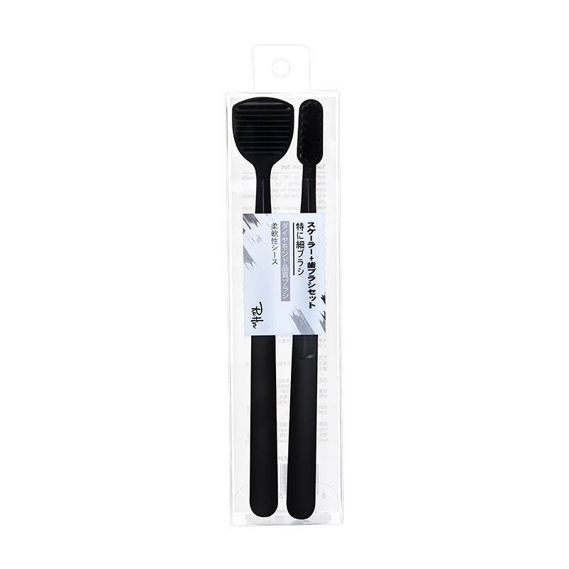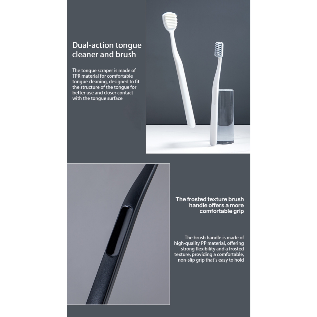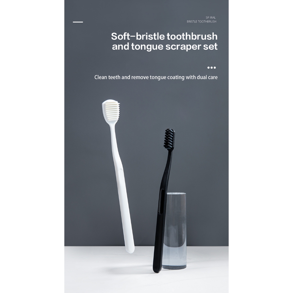 New Tongue Scraper and Couple Toothbrush Adult Black and White Spiral Soft-Bristled Toothbrush