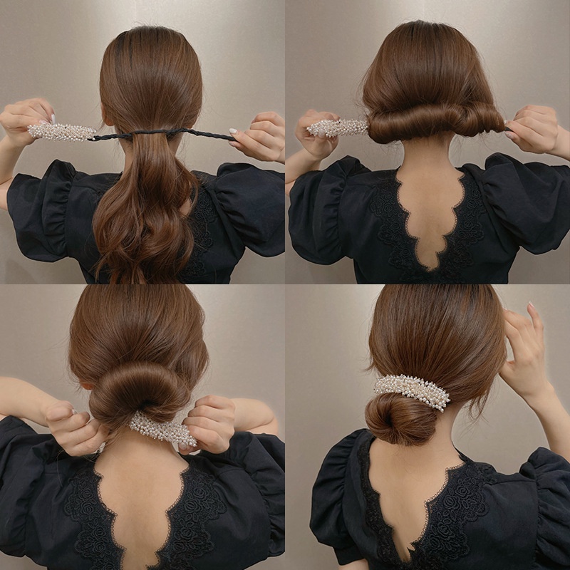 New Trendy Hair Bun Tool Pearl Beaded Hair Bun Maker Hairpin Bun Holder Clip Hair Accessories