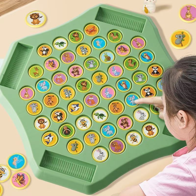 New Version Animal and Fruit Shaped Memory Flipping Chess Toy with 52 Chess Boxes and 4 Card Slots - Fun 4-Player Interactive Chess Set