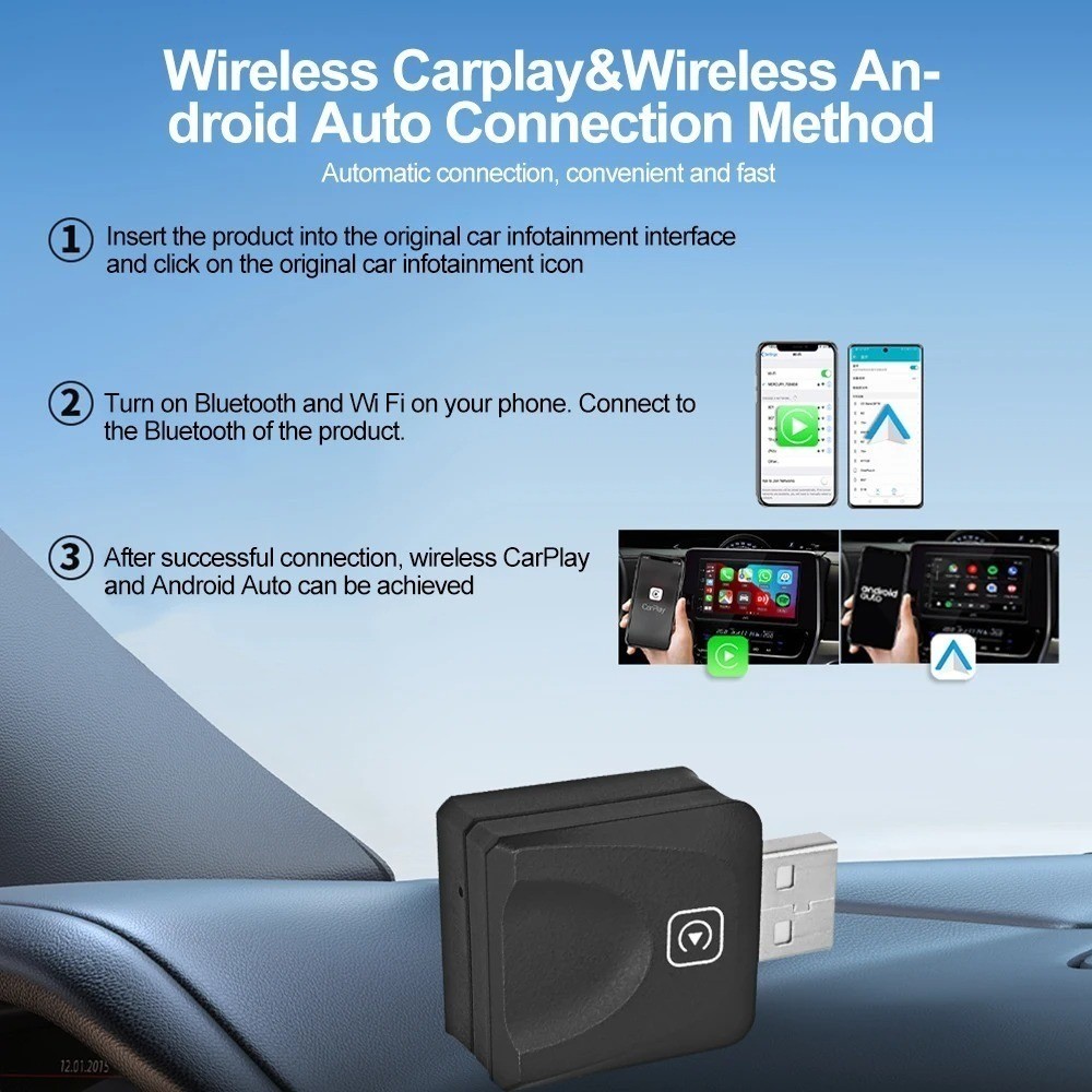 New Wired to Wireless Carplay for Apple & Android Auto Mini Adapter Plug And Play Smart Dongle 2in1 For Volvo Benz Cadillac Jeep