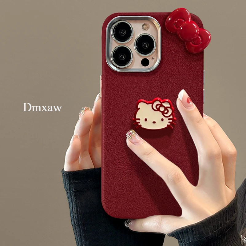 New Year Bow Tie Hello Kilty Case For Samsung Galaxy S25 S24 S23 Plus Ultra FE S25+ S24+ S23+ A02S M02S Spring Festival Hellokitty Cover With Strap Plush Pendant Rope
