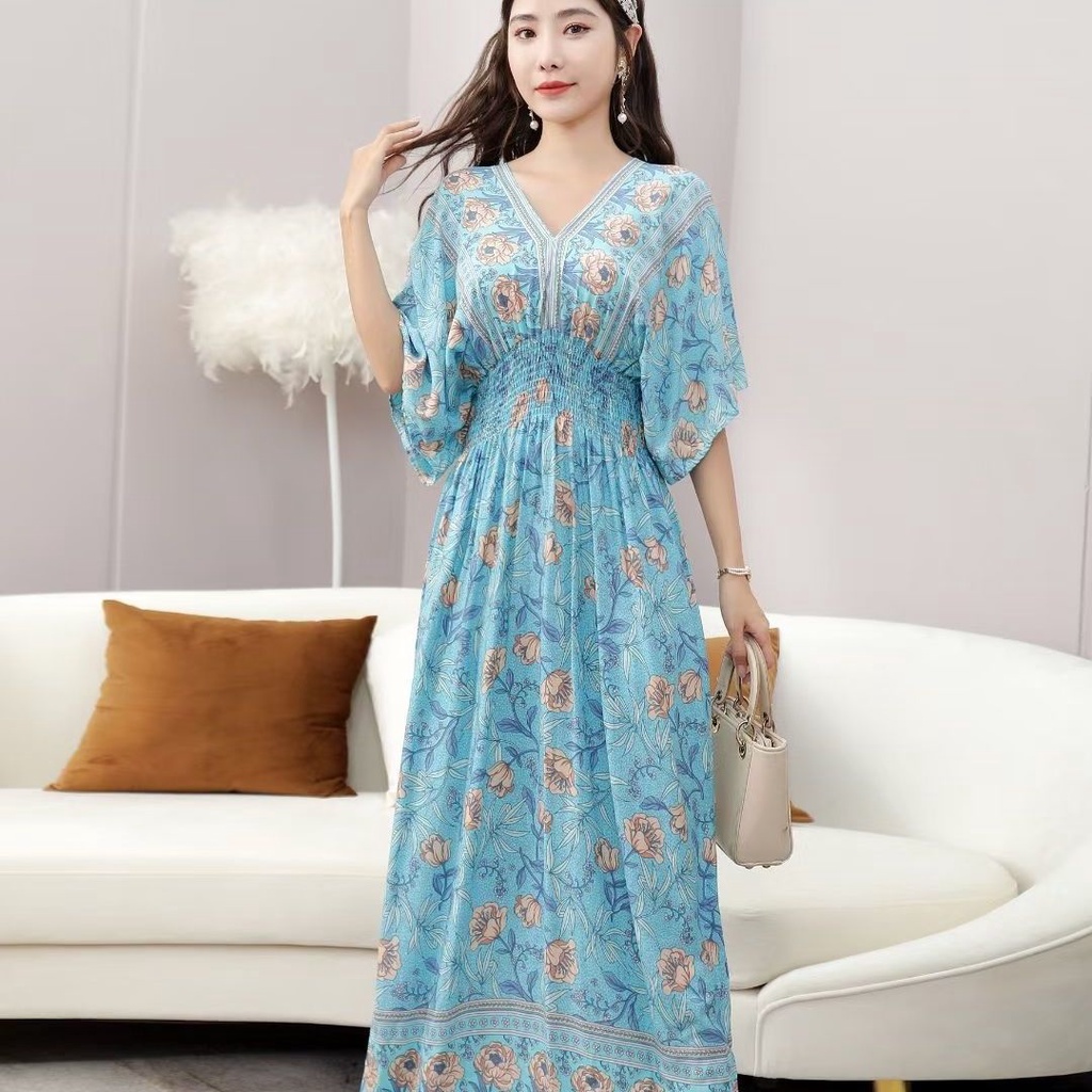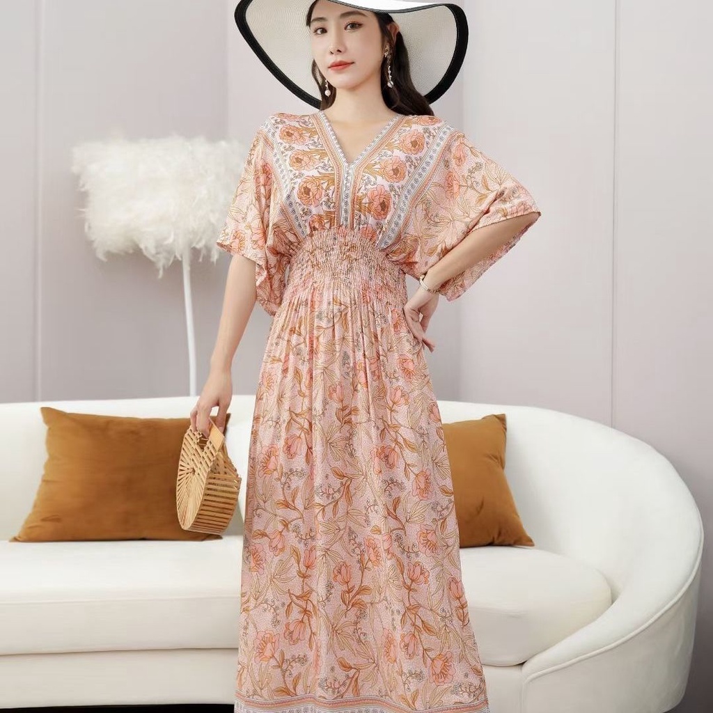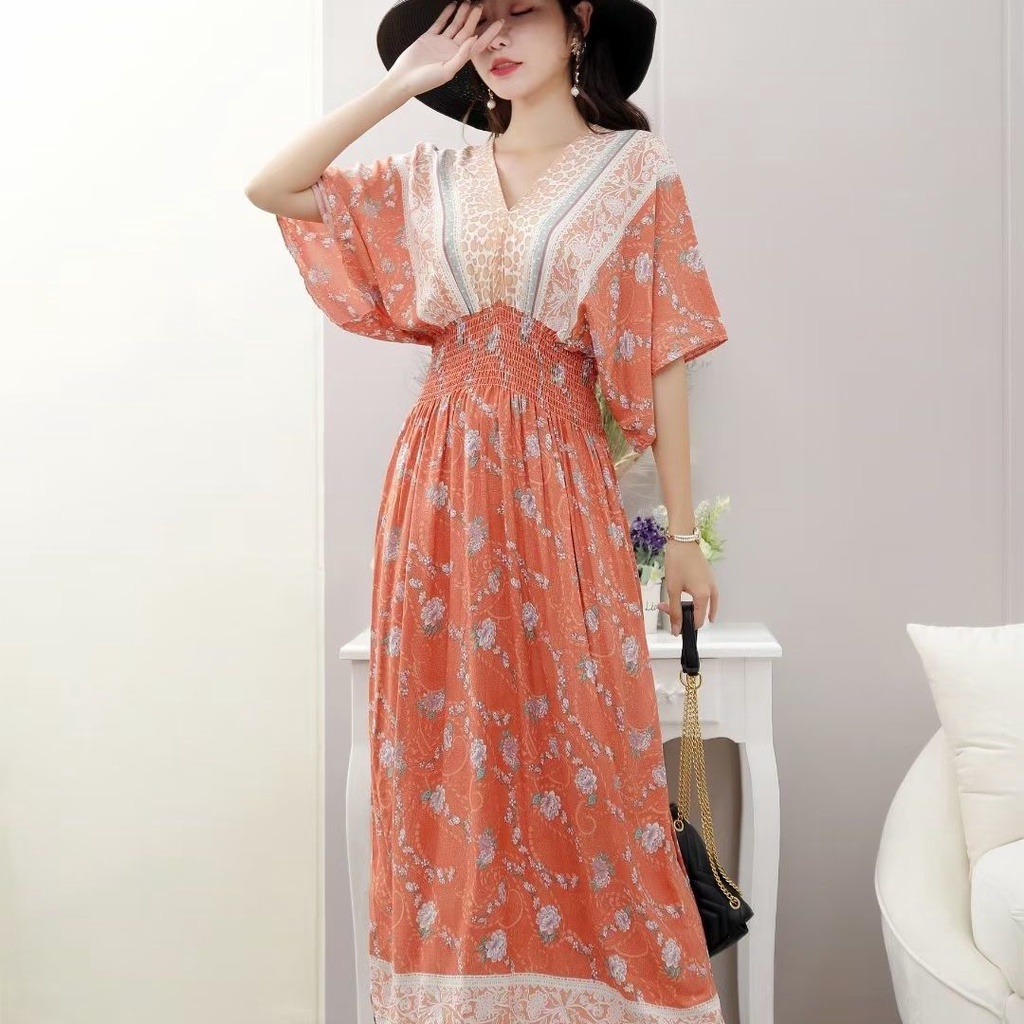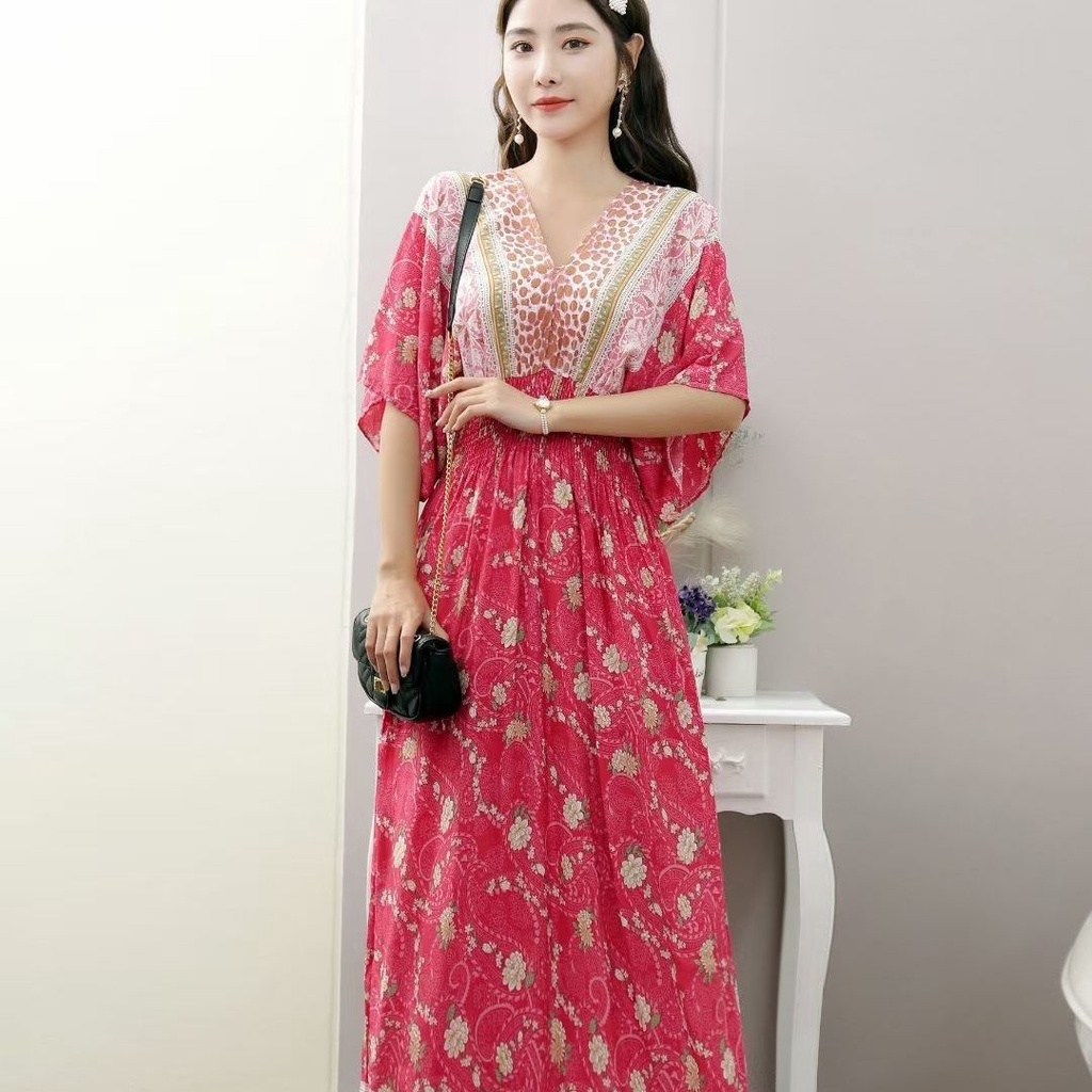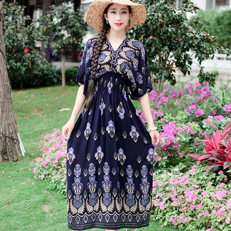 New Year Clothes 2024 cheongsam cheongsam cny dress New Year dress Indonesia dress Female Thai Bohemian Ethnic Style Retro Long dress Seaside Vacation Beach dress