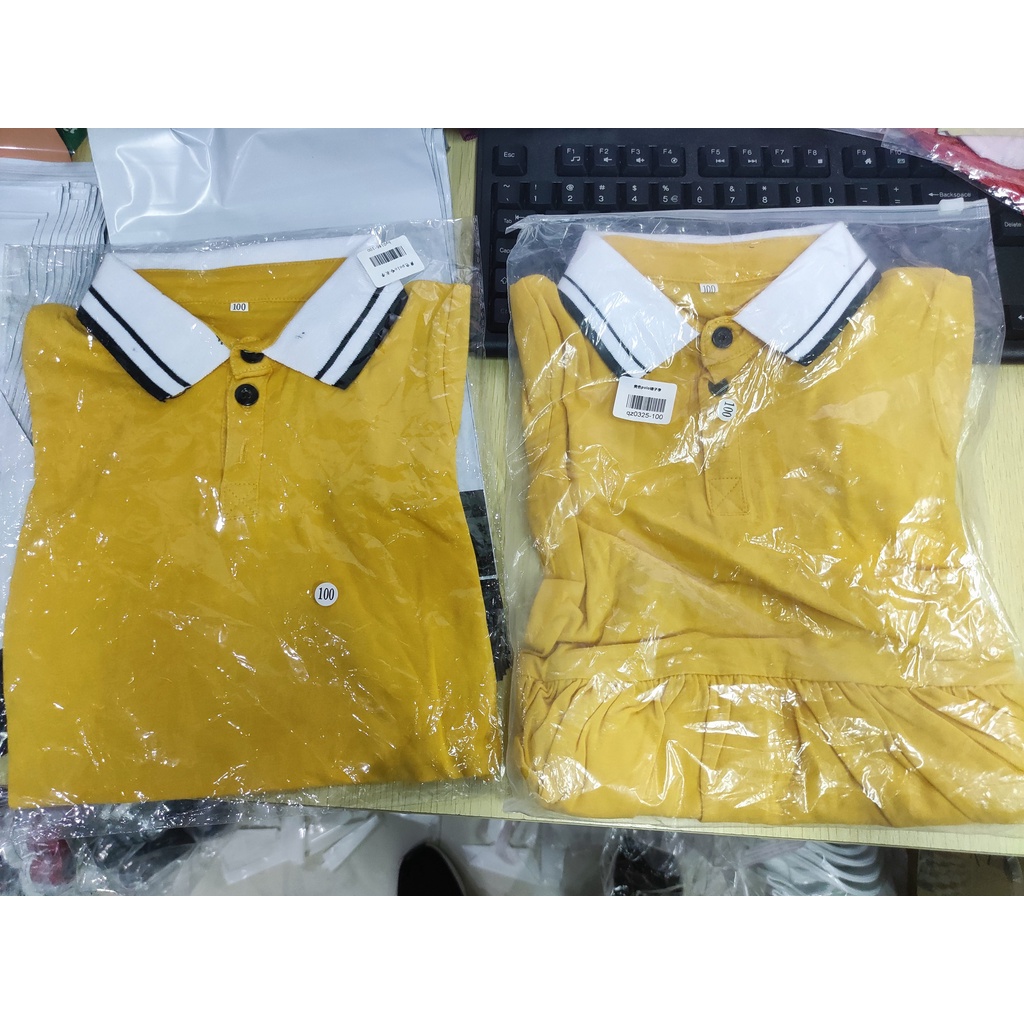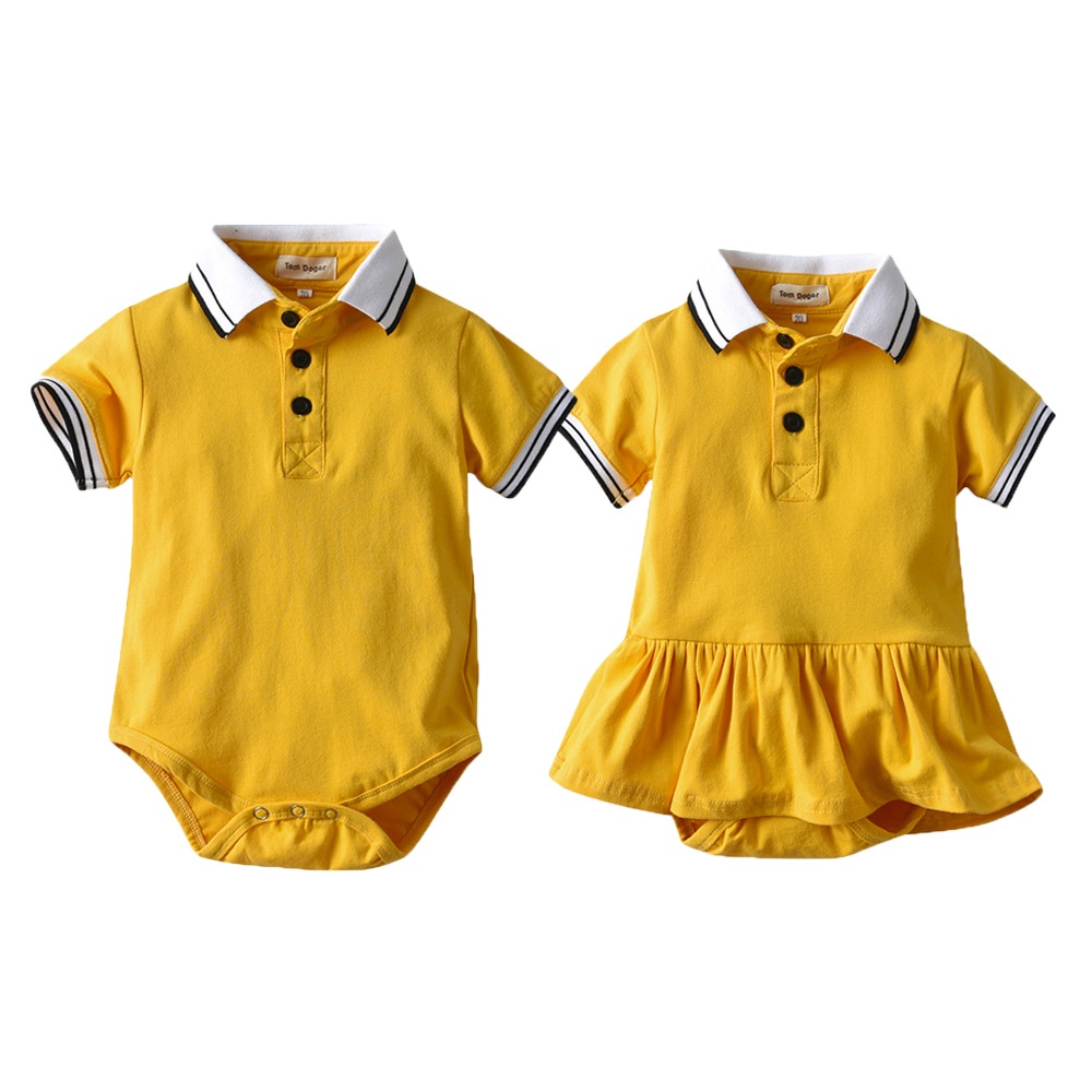 Newborn Siblings Twinning Twins Clothes Baby Boy Girl Deep Yellow Polo Shirt Romper Dress Brother and Sister Matching Clothes Casual Kids Wear