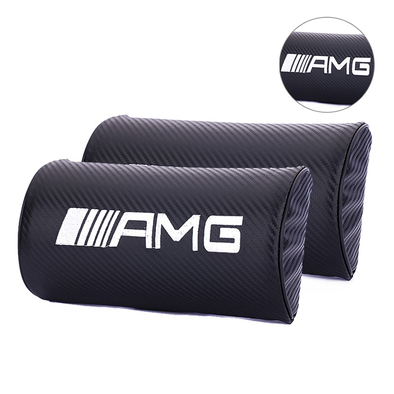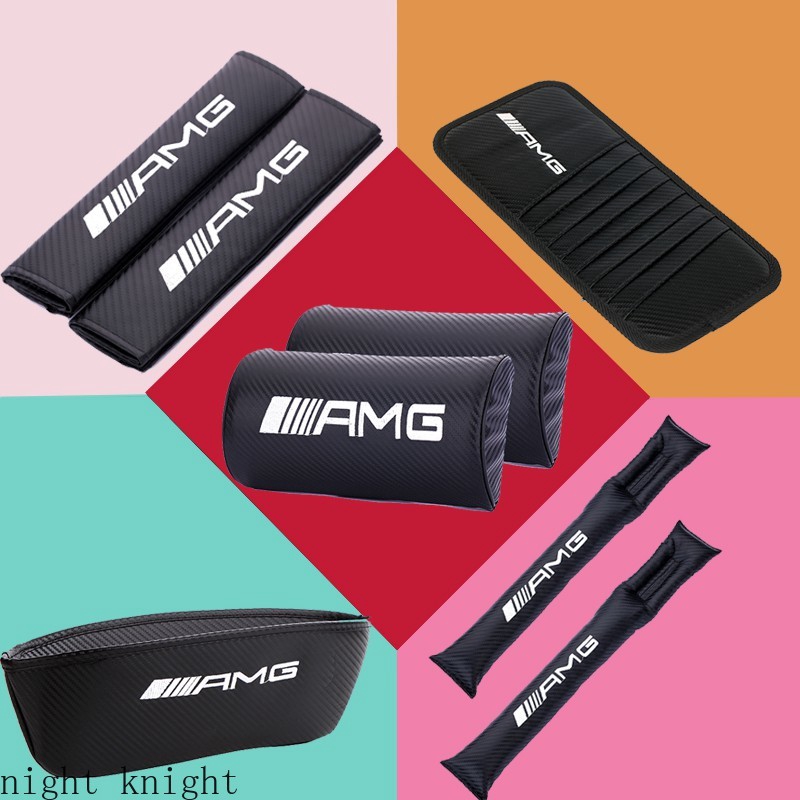 Night knight Mercedes Benz AMG Carbon Fiber Car Seat Neck Headrest Safety Belt Pad Cover Shoulder Pad Gap Leak-Proof Slit Plug Sun Visor CD Clip Catcher Box Car Steering Wheel Cover