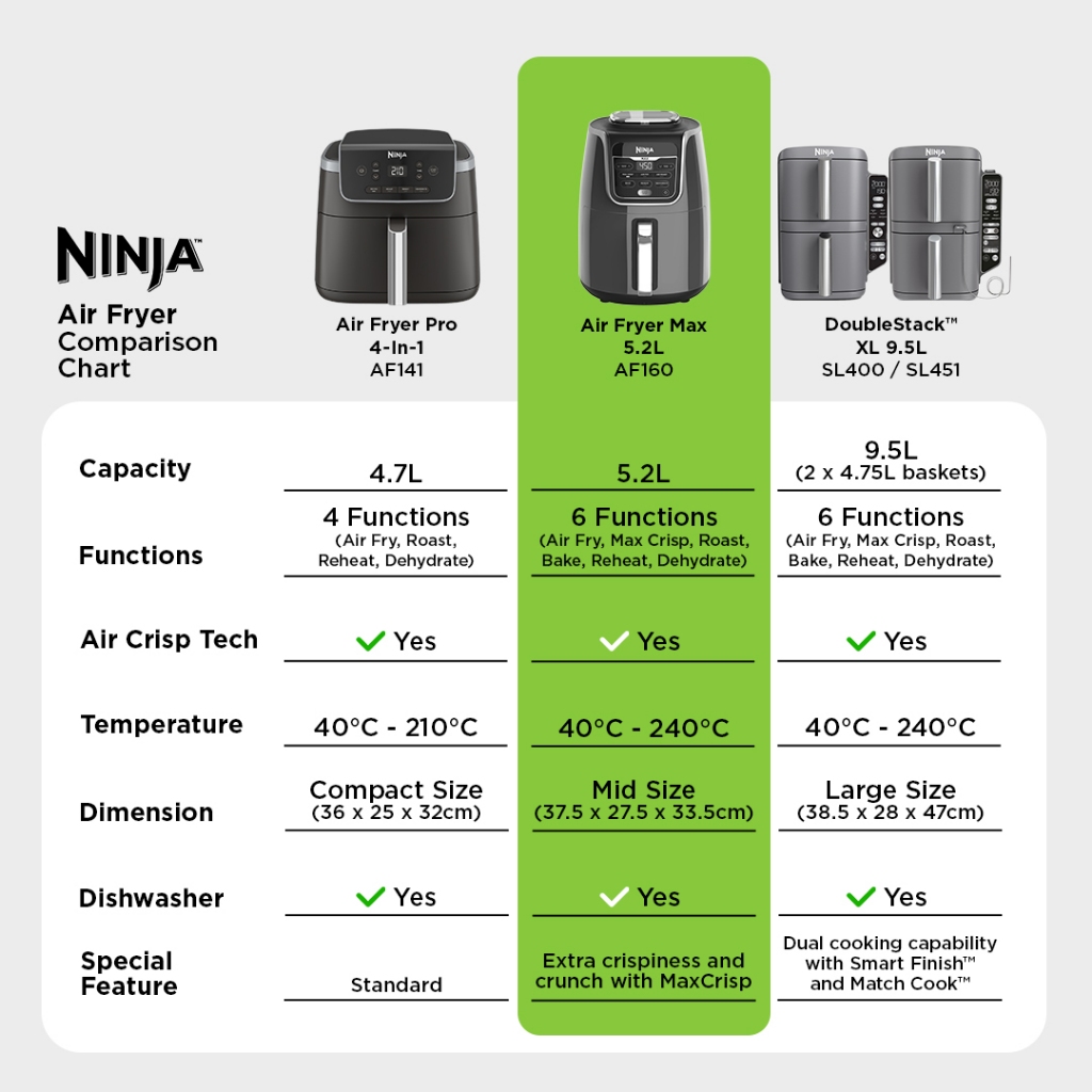 Ninja Air Fryer Max 5.2L, Digital Airfryer, Cooks, Crisps, Roasts, Bakes, Reheats and Dehydrates - Ninja AF160