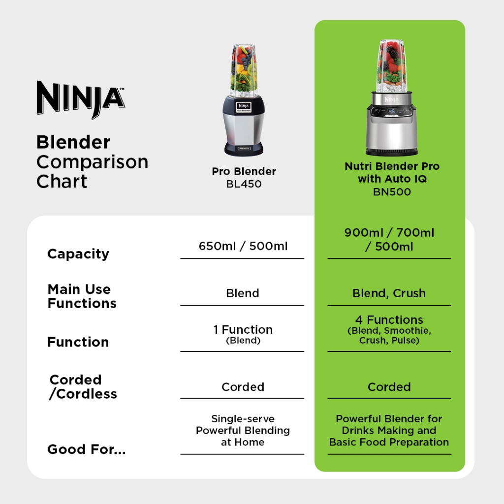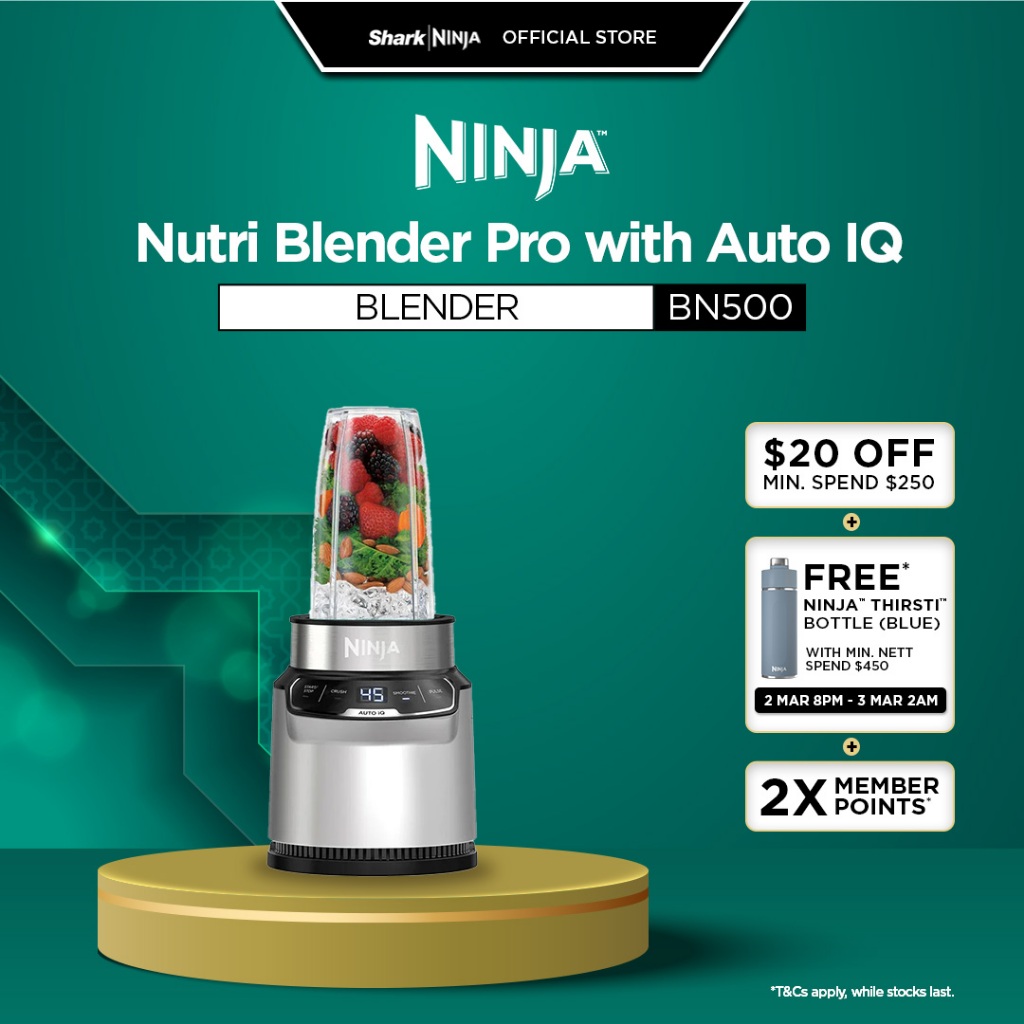 Ninja Nutri Blender Pro, Auto-iQ & Pro Extractor Blade , 3 On the Go cups, 1000W motor Crush Ice, Smoothie maker - BN500
