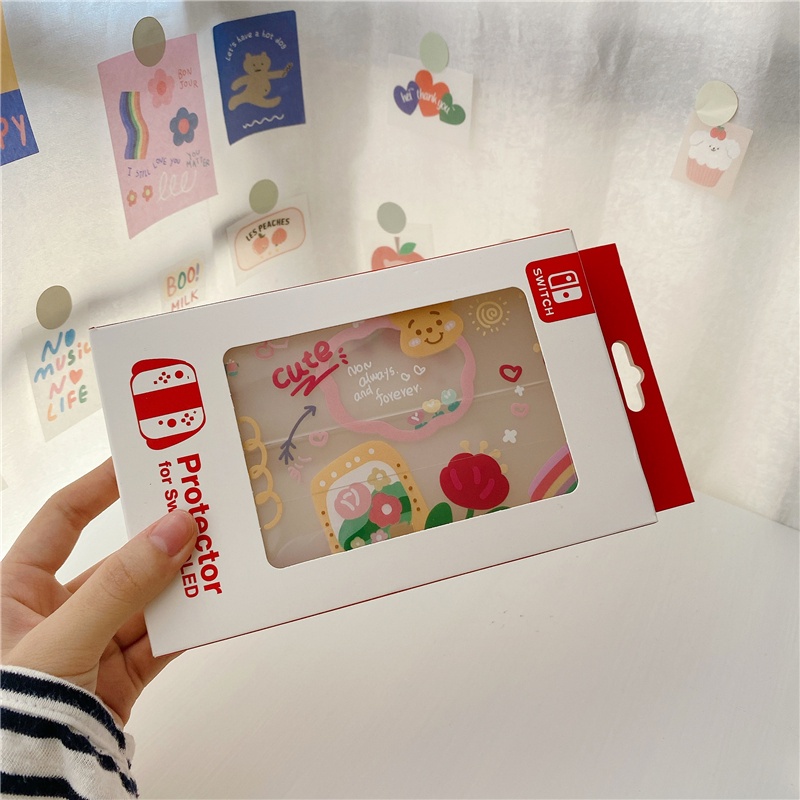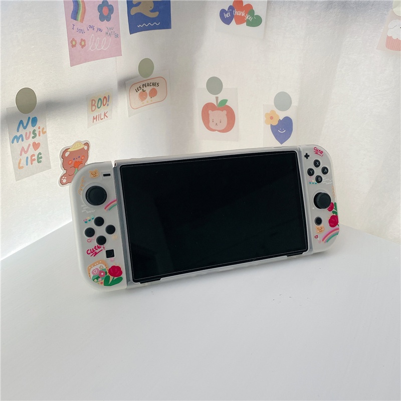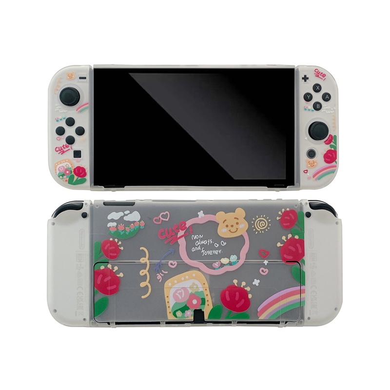 Nintendo Switch OLED So Cute Casing Cartoon Red Flower Pooh Bear Soft Shell TPU Game Console Handle Painted Storage Box Drop-proof Switch Case