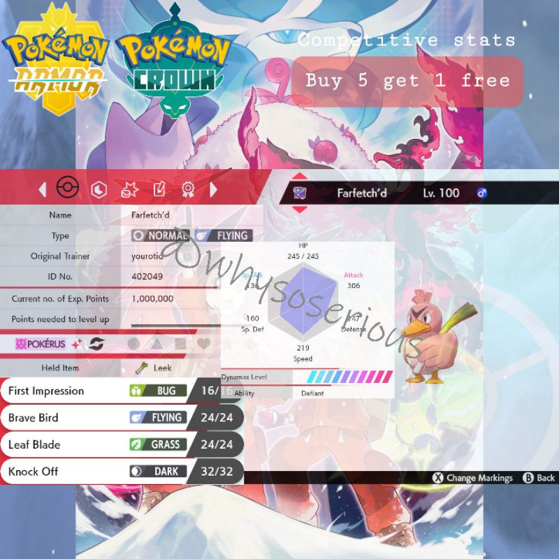 Nintendo Switch Pokemon Sword and Shield, Square Shiny Kanto Farfetch'd, Battle ready (Digital Game Code)
