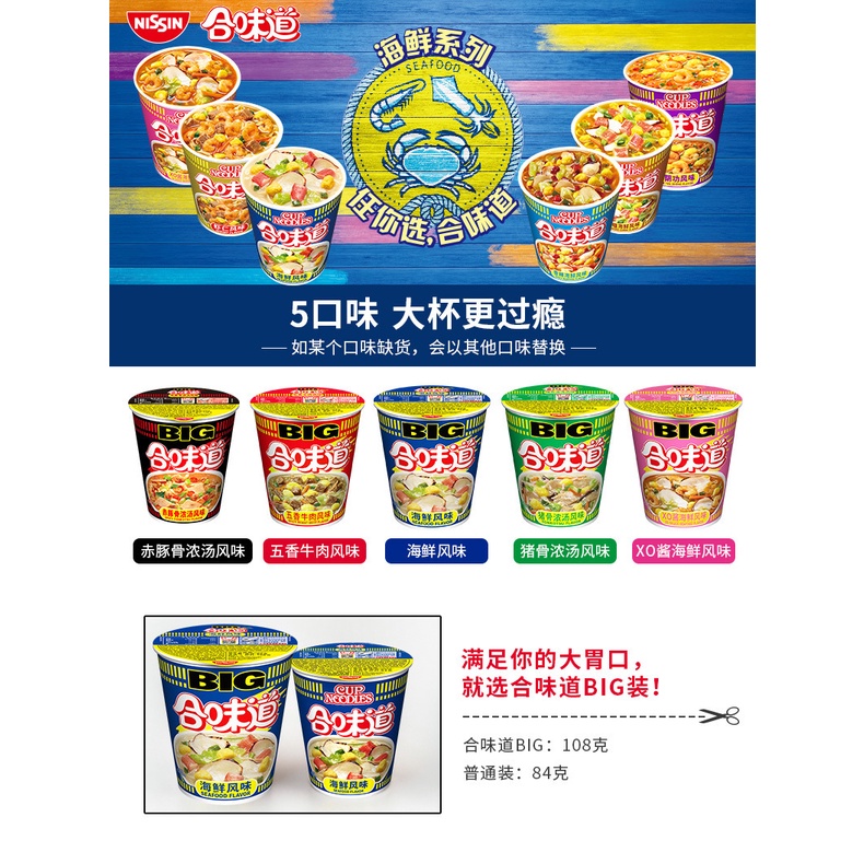 NISSIN NISSIN Cup Noodles BIG Flavour Series Large Cup Cup Noodles 108G Pork Bone Beef Seafood Flavor | Nissin Famous BIG Cup Straws Series Tonkotsu Beef Seafood Straw