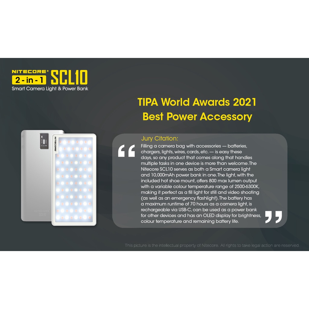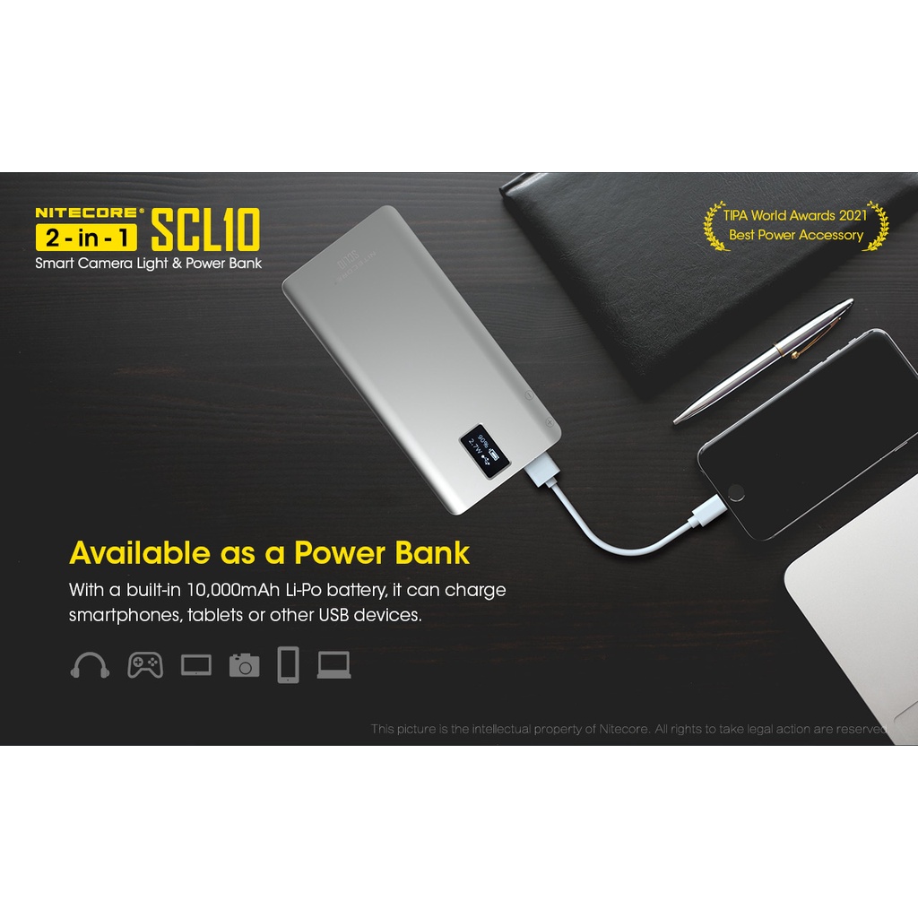 Nitecore SCL10 - 2-in-1 Smart Camera Light & Power Bank (SG STOCK)