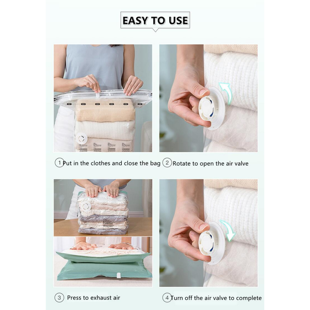 No Need Pump Vacuum Bags Large Plastic Storage Bags for Storing Clothes blankets Compression Empty Bag Covers Travel