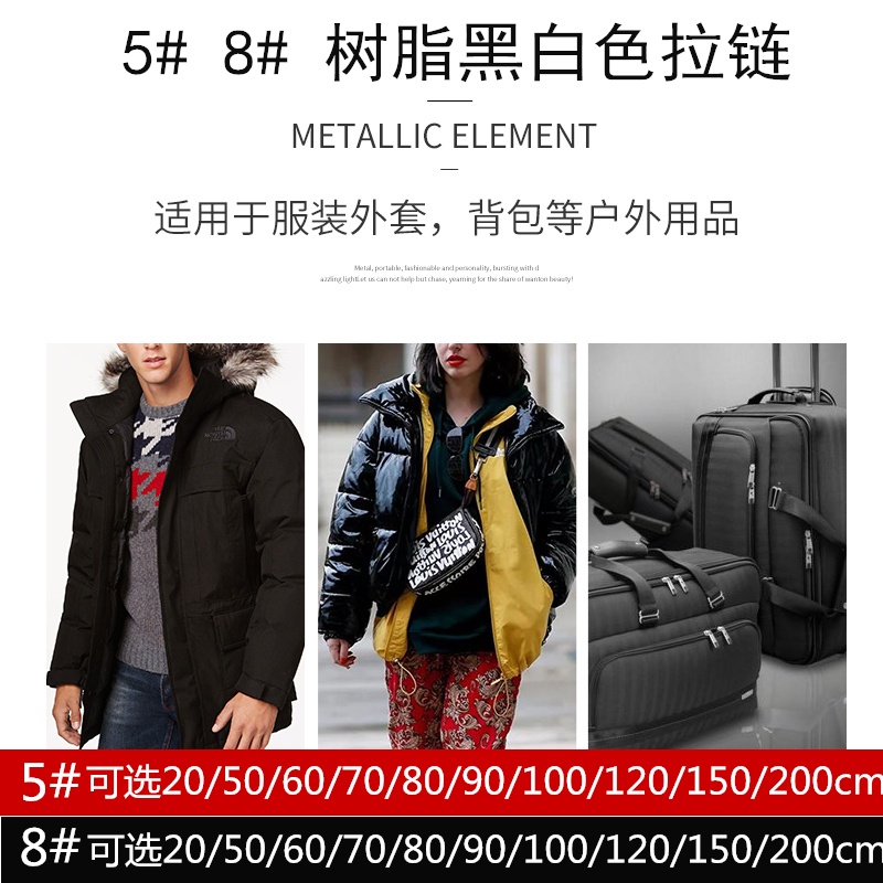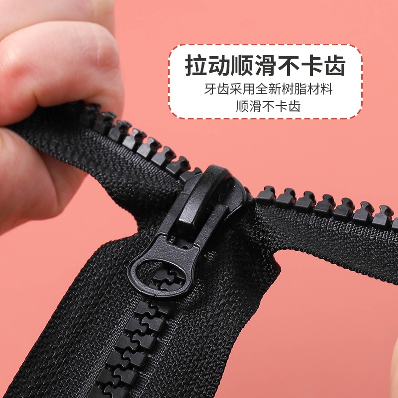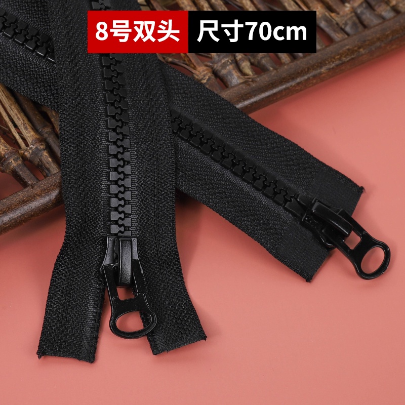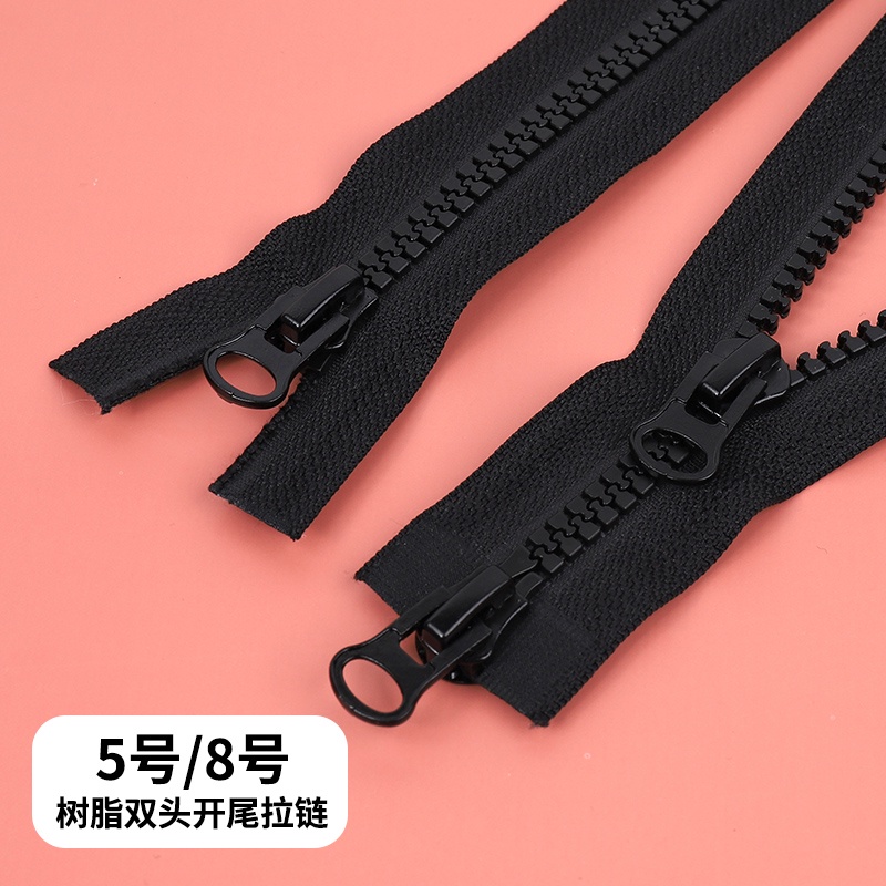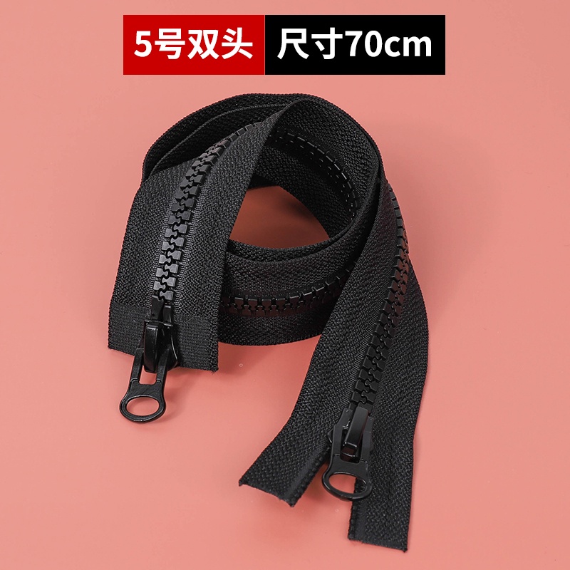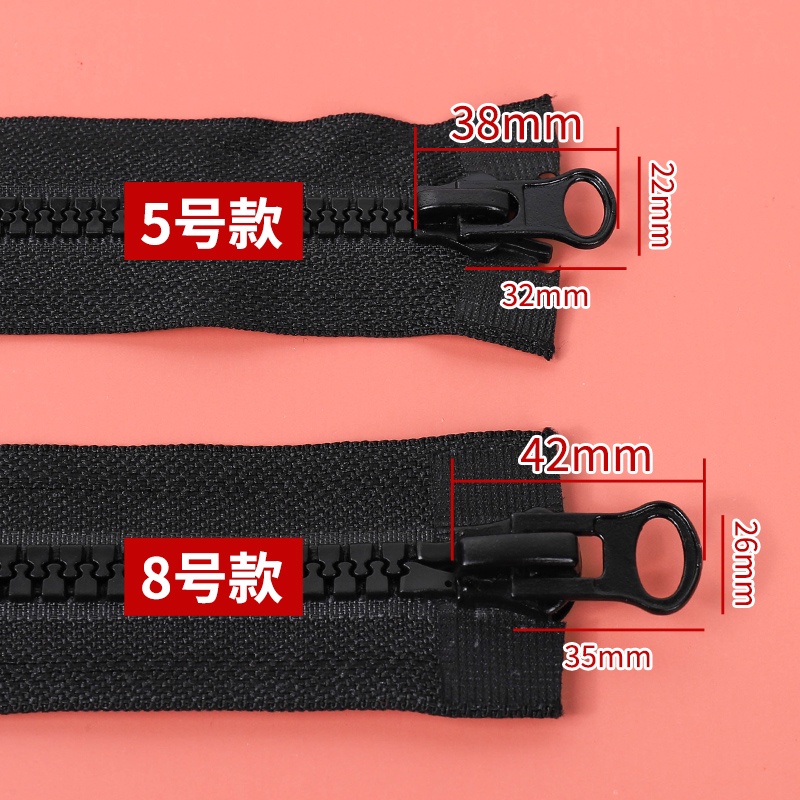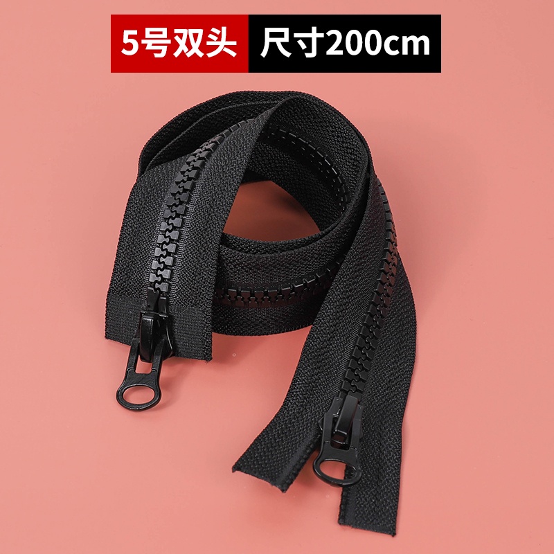 No. 8 5 Zipper Puller Long Down Jacket Resin Coarse Tooth Double Clothes Two-Way Open Black