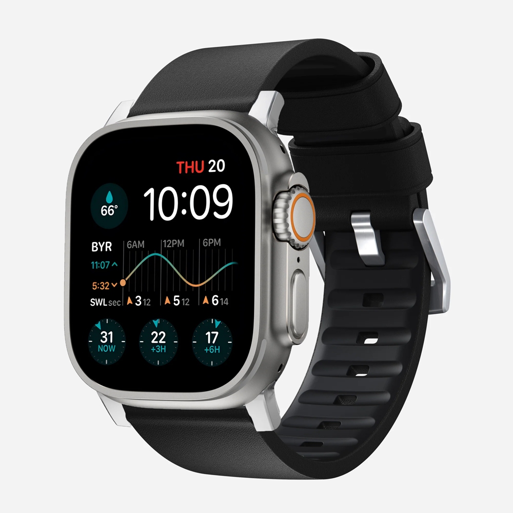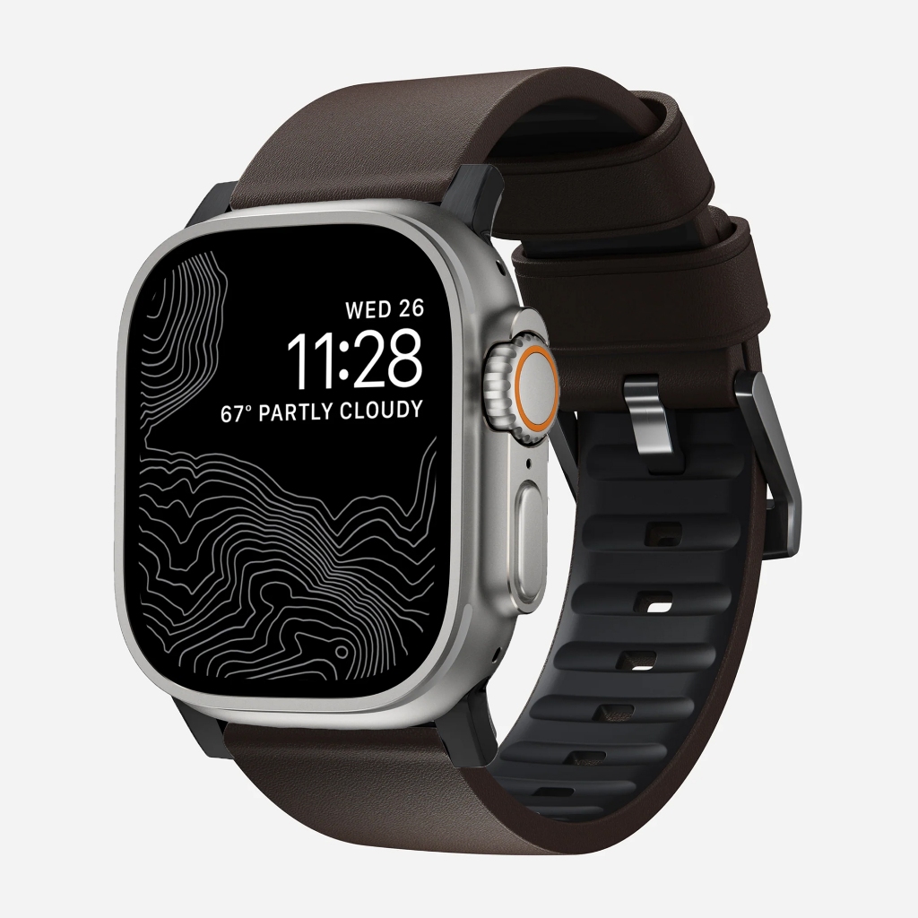 NoMad Active Pro Rubber Genuine Leather Band for iWatch Ultra 2 49mm 45mm 44mm 41mm 40mm Watchband Silicone Leather Hybrid Strap for iWatch Series 9 8 7 6 5 4 SE2 Accessories