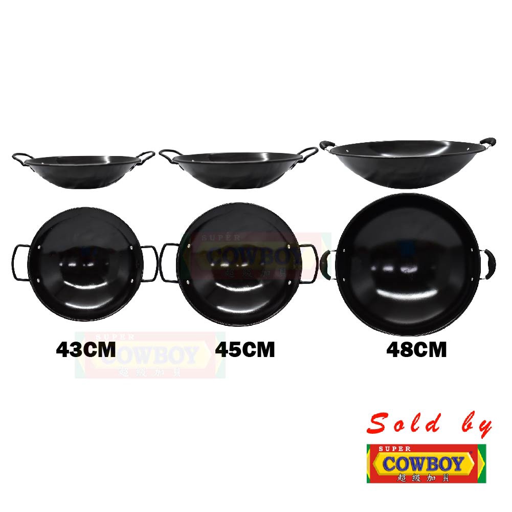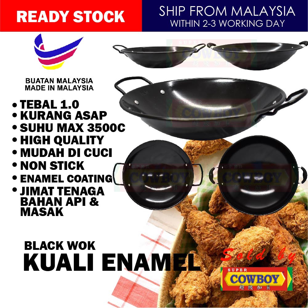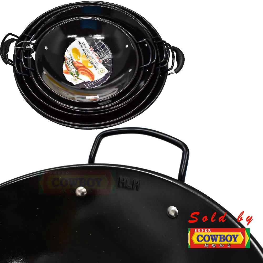 Non Stick Handle Enamel Wok Kuali Hitam Black Kwali 30cm 34cm 37cm 40cm 43cm 45cm 48cm