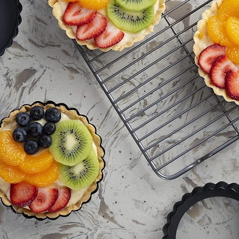 Non-Stick Tart Mould Pie Pizza Pan Molds AcuanTart Egg Tart Mould Cake Round Mould Non Stick Pan Set Removable Bottom 3/4/5 Inch Baking Mould