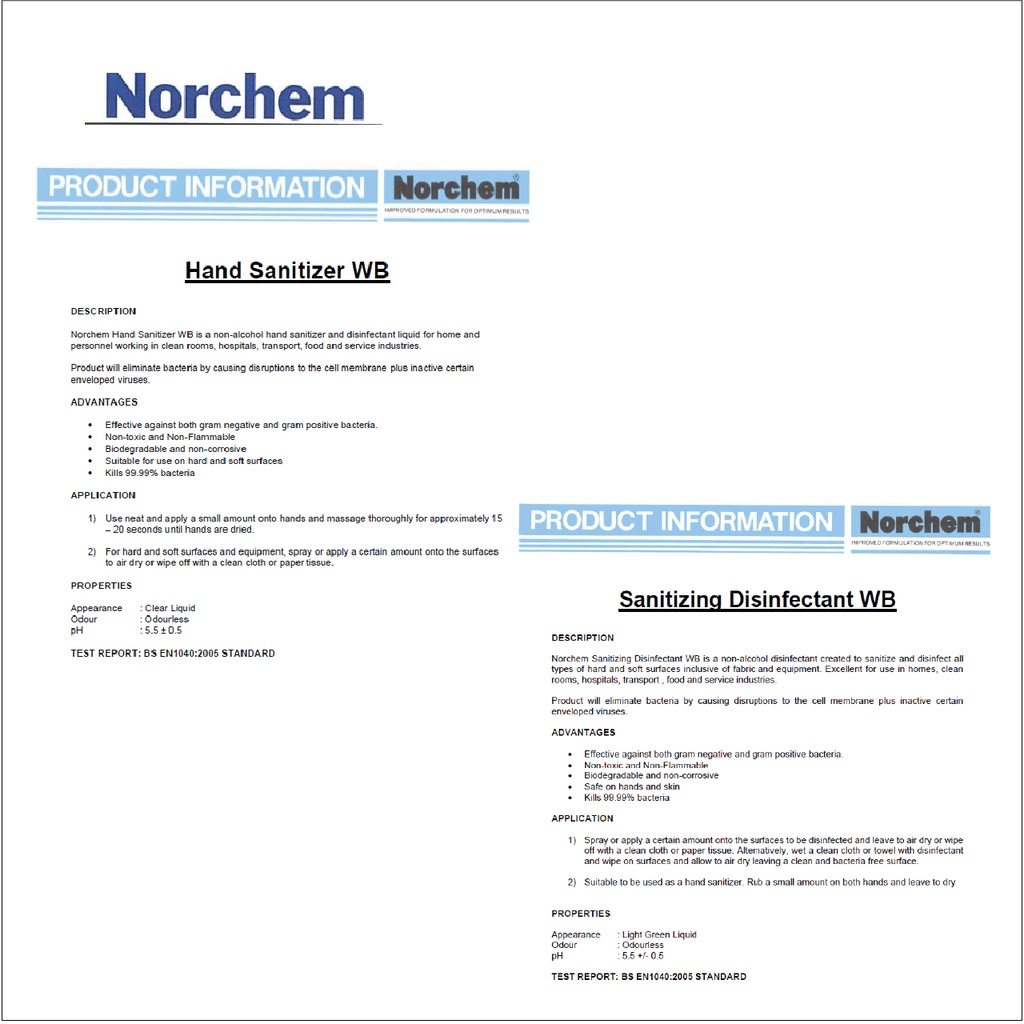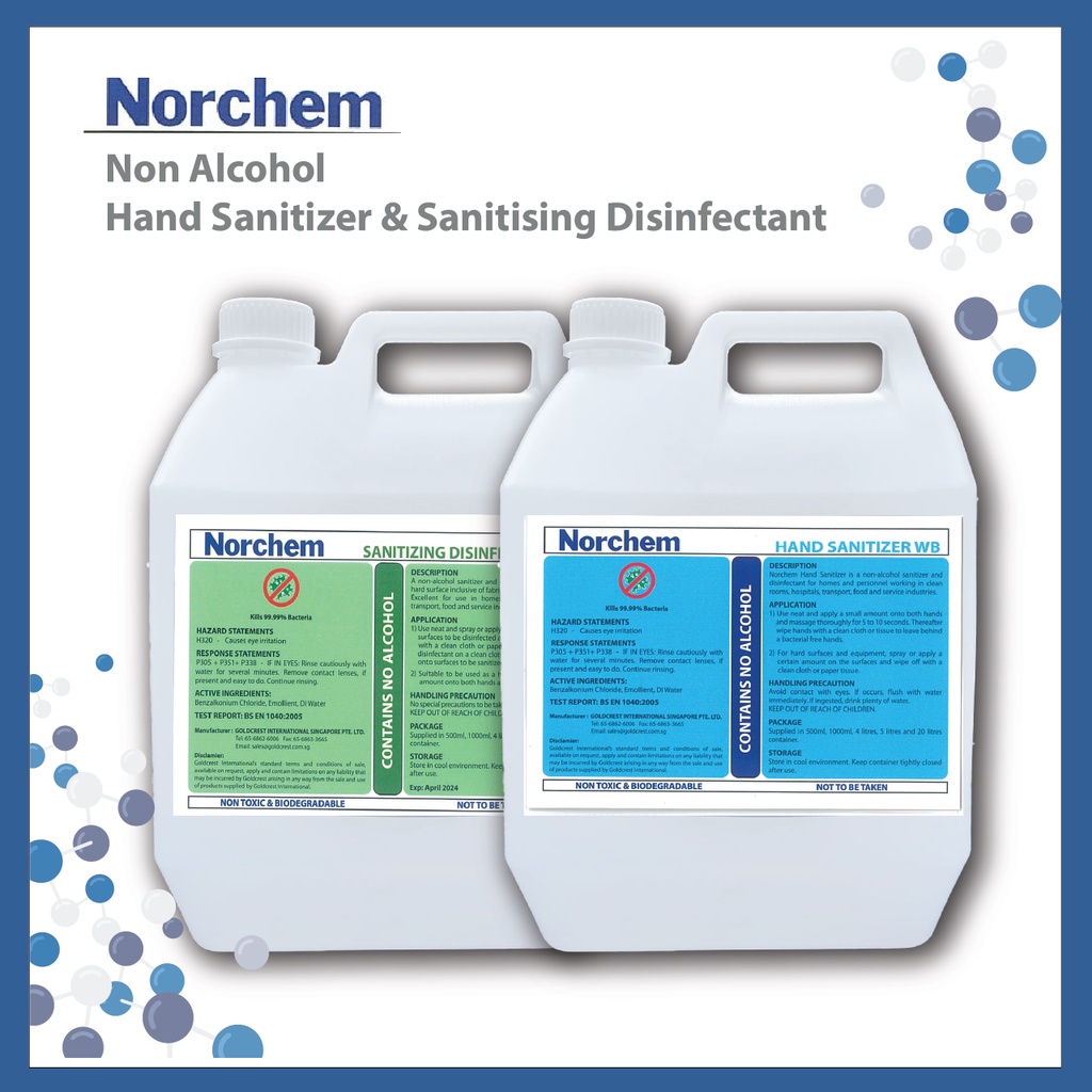 Norchem Non Alcohol Hand Sanitizer/Sanitising Disnfectant - 5L