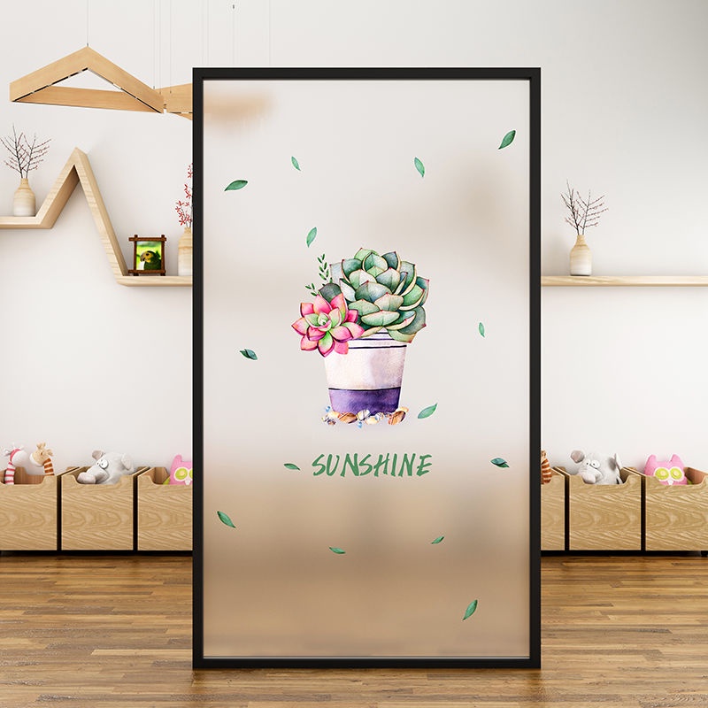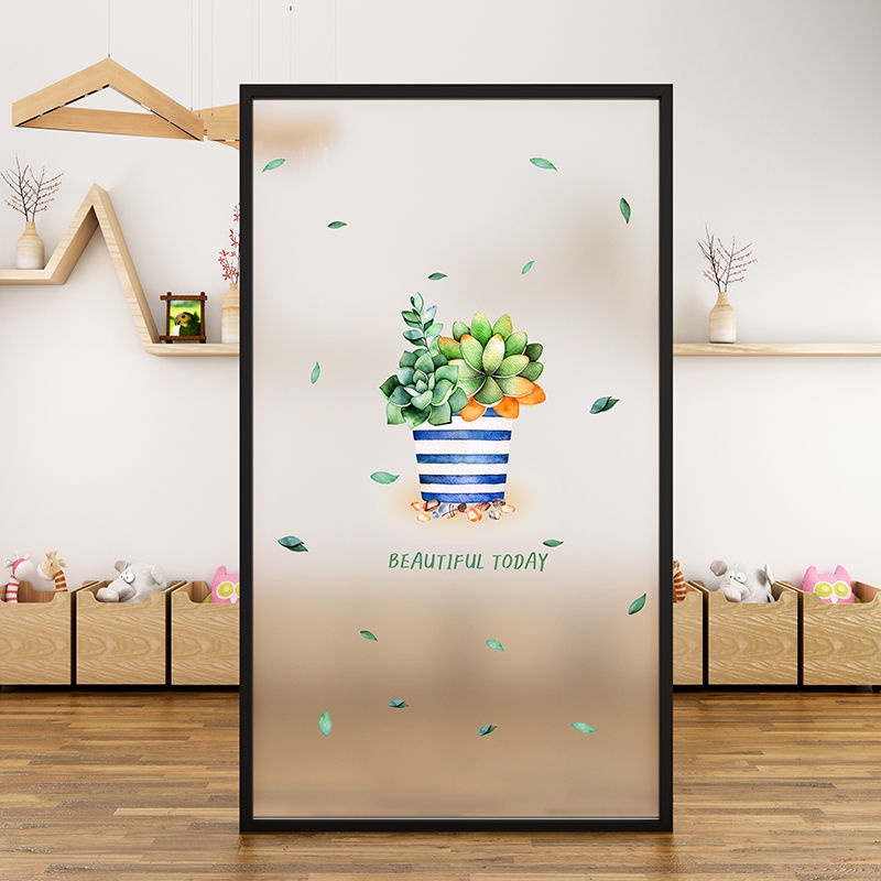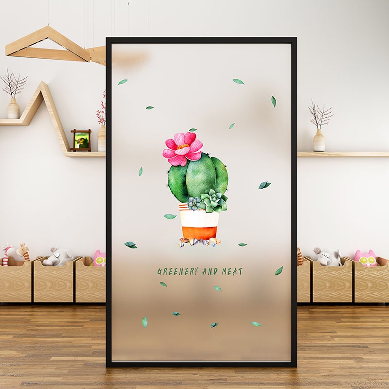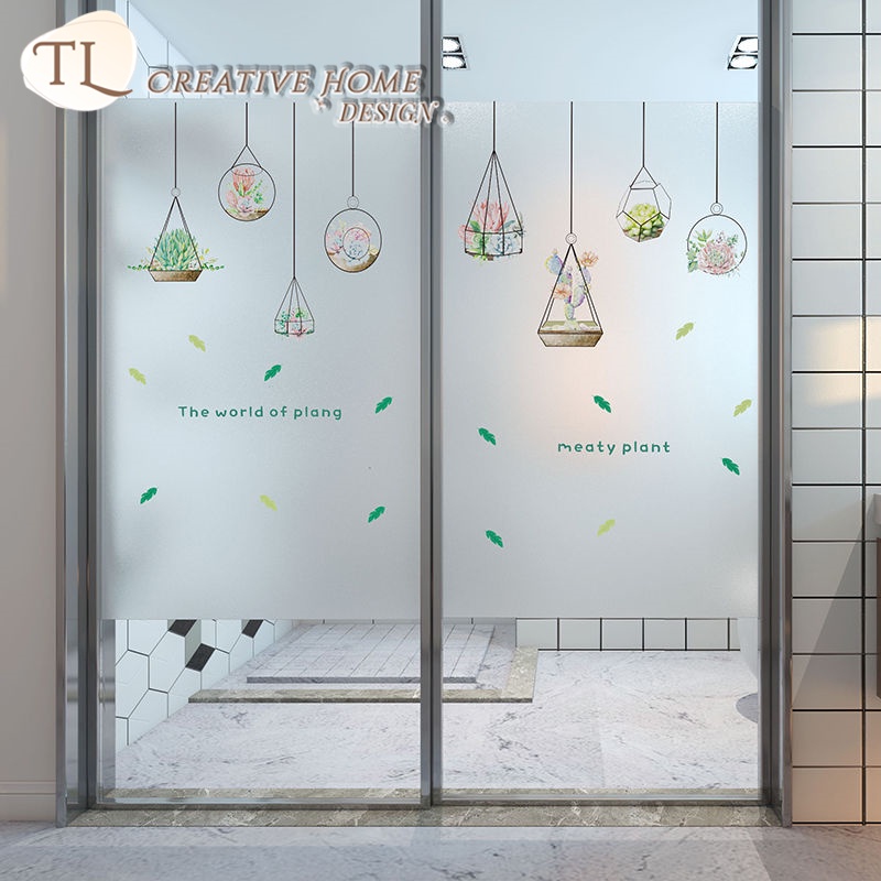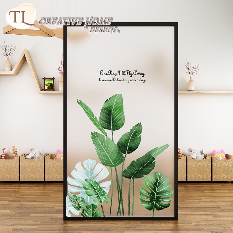 Nordic Style Green Plant Frosted Sticker Window Electrostatic Glass Film Sliding Door Kitchen Bathroom Privacy Translucent Opaque Fresh