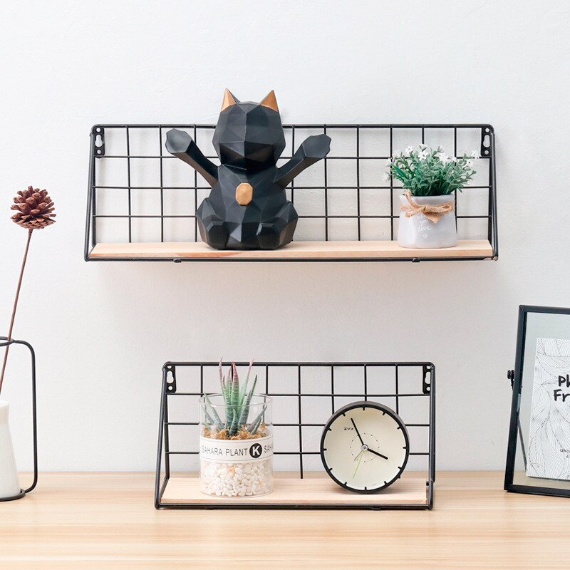 Nordic Style Wooden Shelf Iron Storage Holder Display Box