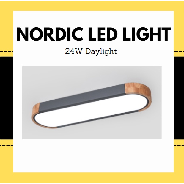 Nordic Wood Rectangular Linear Led Ceiling Light 24W Corridor Bedroom Balcony