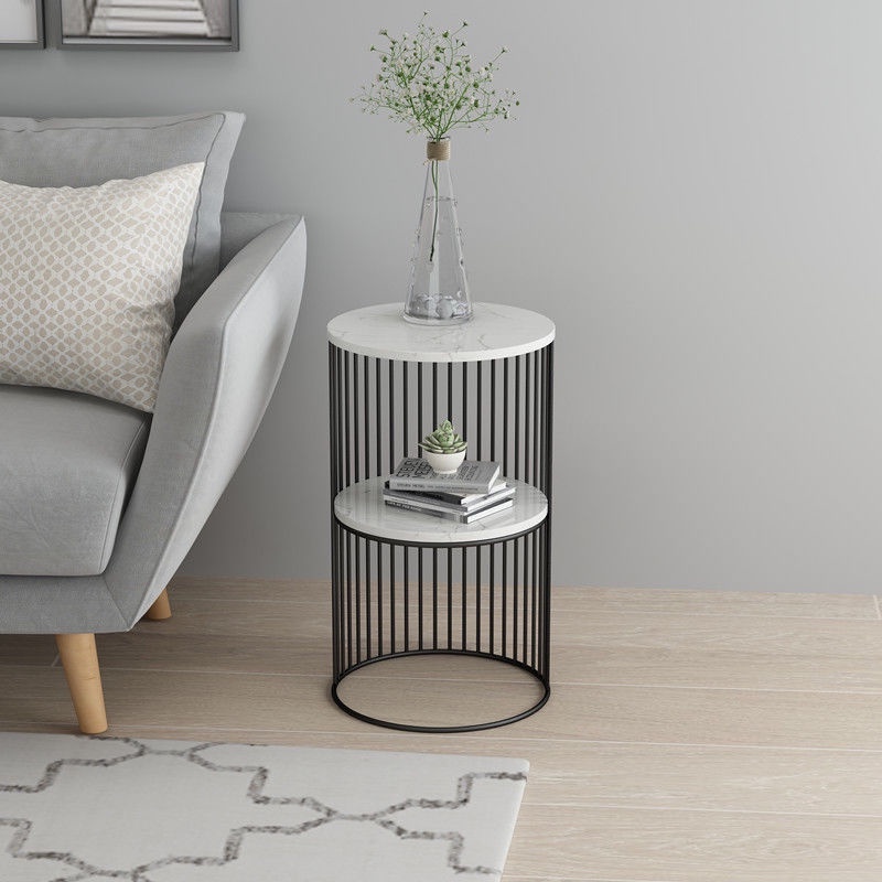 Nordic side table marble coffee table simple small round table living room bedroom balcony sofa side table display bedside table