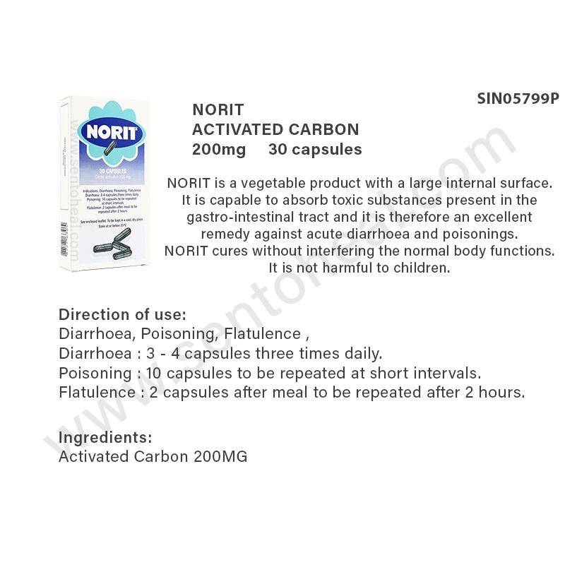 Norit Carbo Activatus 200mg 30 capsules - Activated Carbon/ Charcoal pills