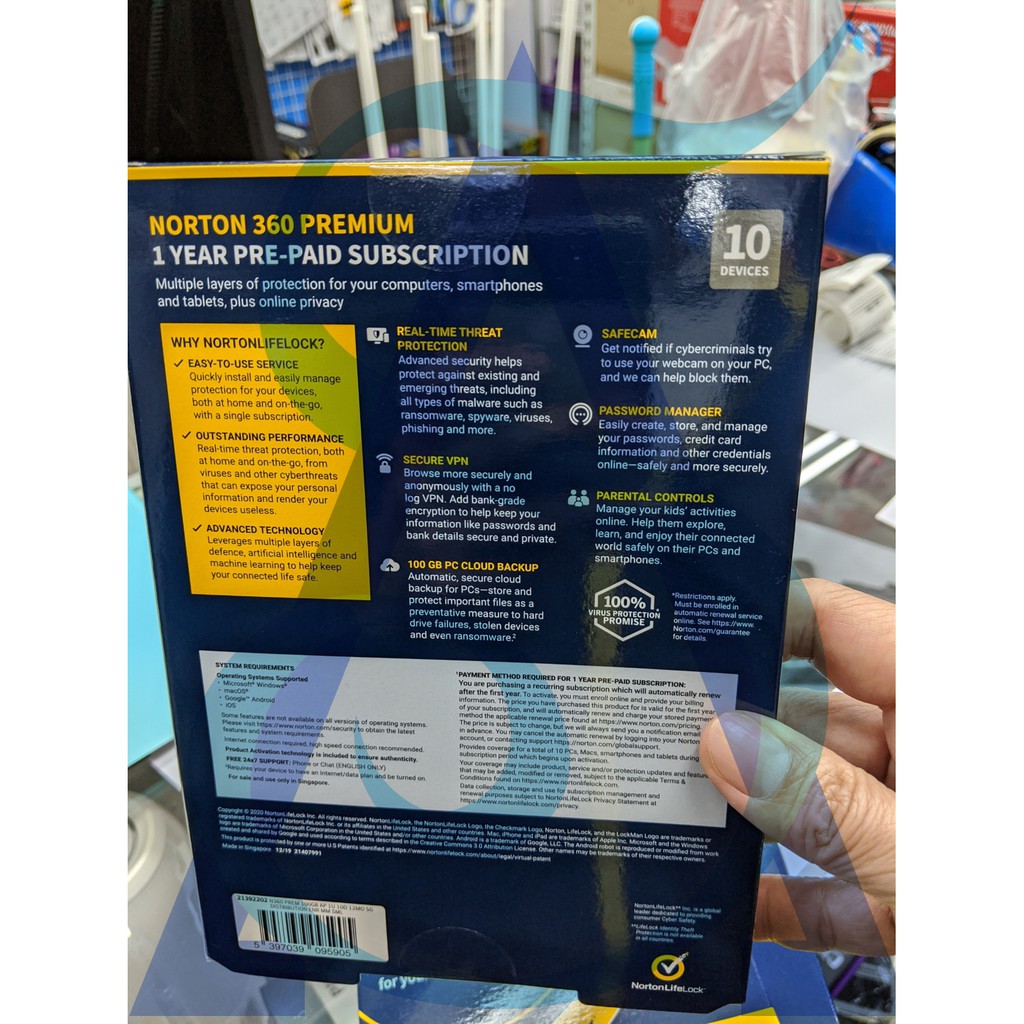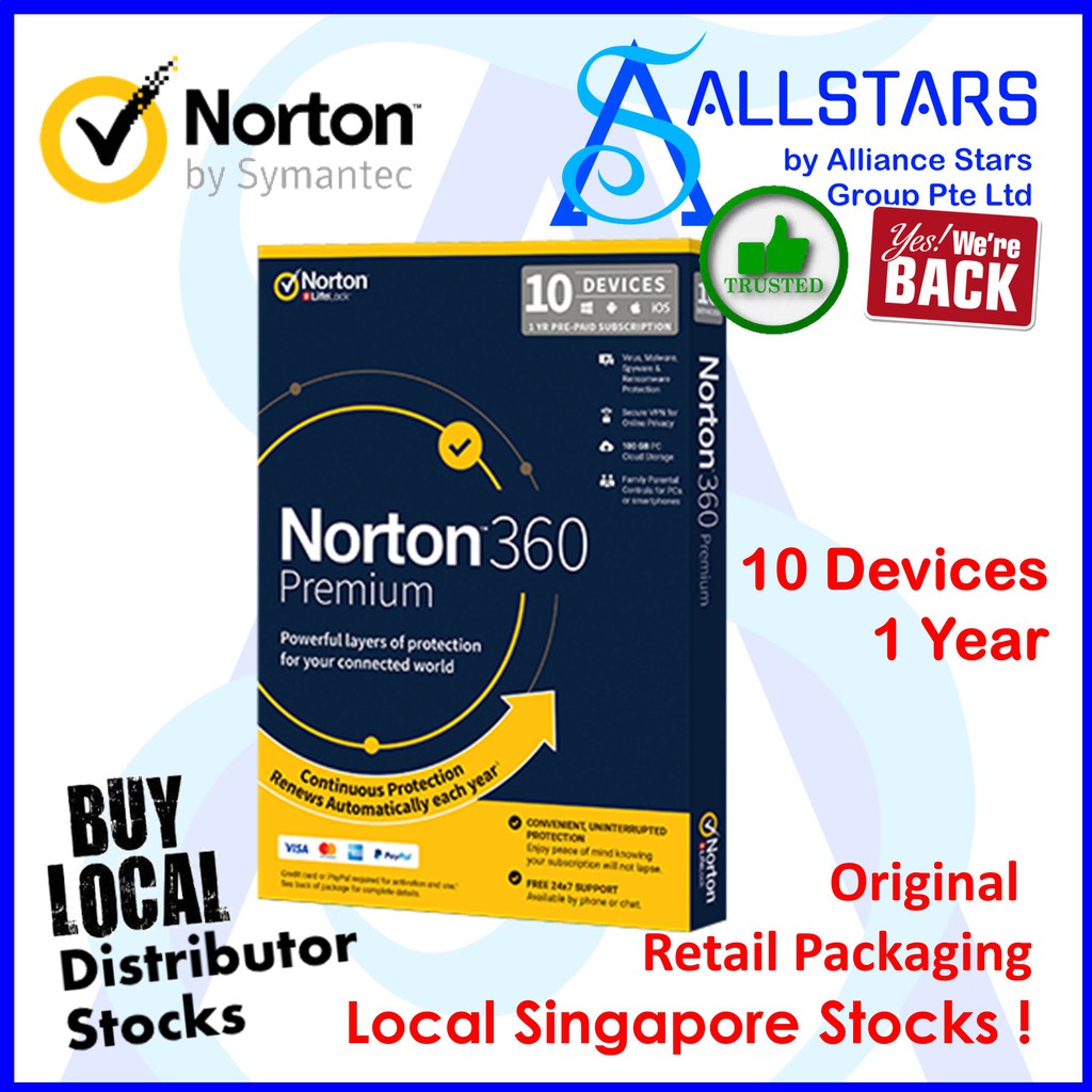 Norton 360 Premium 10Devices /1year Retail Packaging(Local Distributor Stocks)[Symantec / Antivirus / Internet Security]