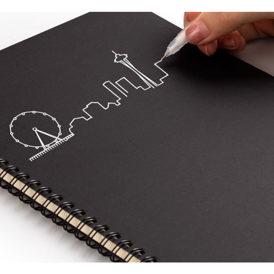 Notebook A4 A5 Sketch Book Spiral Wire O Planner Journal Black Notebook Buku Nota Plain Line Dot Grid 100 200 page