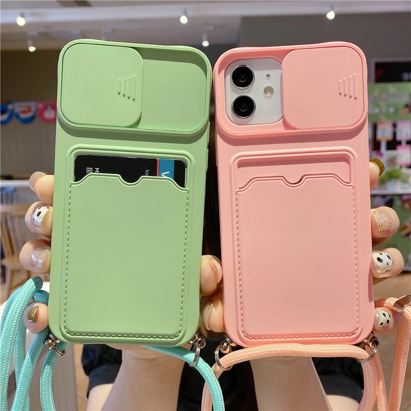 Novelty Push-Pull Lens Protector Misty Sling Phone Case for iPhone 16 15 14 pro max 13 12 11 PRO MAX X XS MAX XR 8 7 PLUS SE 2020 Case Wallet ID Credit Card Slot Phone Case Crossbody Lanyard Silicone Candy Color Soft Cover