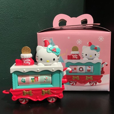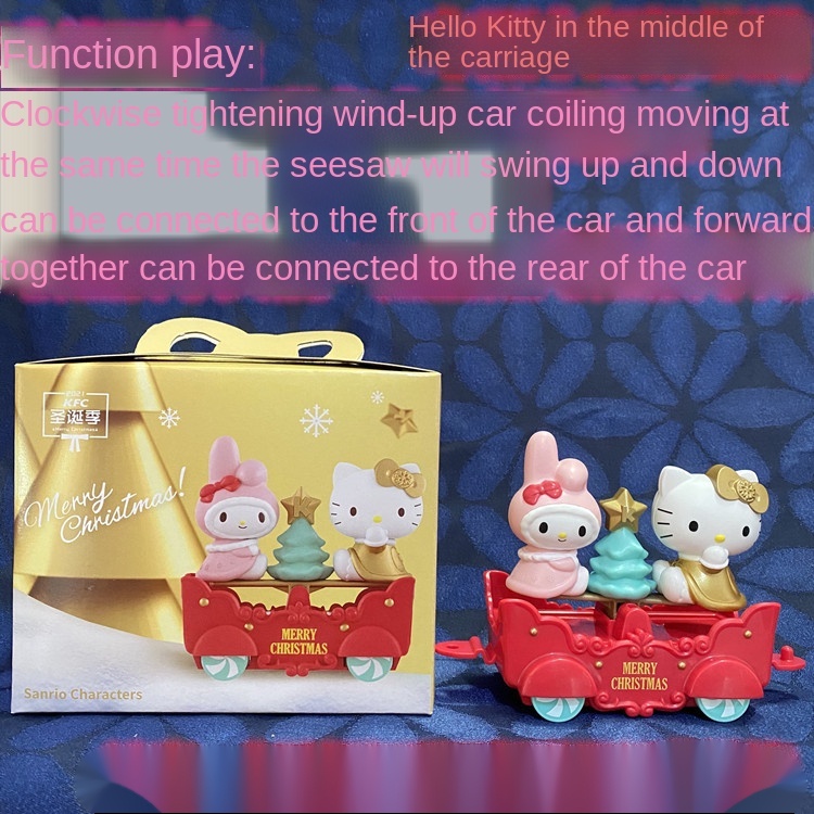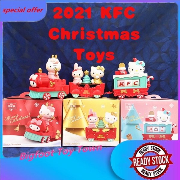 November 2021 KFC Christmas train Hello Kitty toys, Sanrio, my melody train storage bucket. KFC toy collection, Christma
