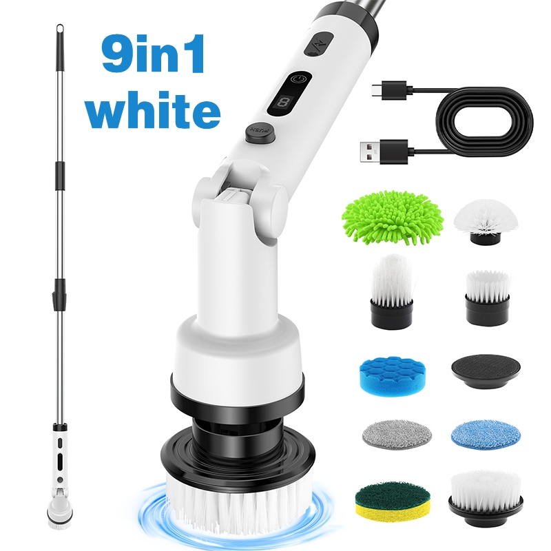 Novi 9 in 1 Portable Electric Cleaning Brush Set Kit Replaceable Cleaning Heads Scrubber Electric Spin Scrub Cordless Cleaning Brush