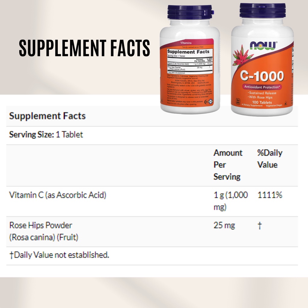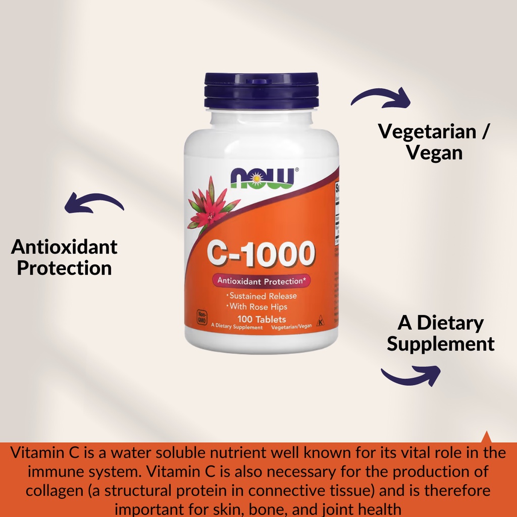 Now Foods, C1000, Vitamin, With Rosehip, Collagen, Skin, Bone, and Joint, Amino Acid, Metabolism, 100 Tablets