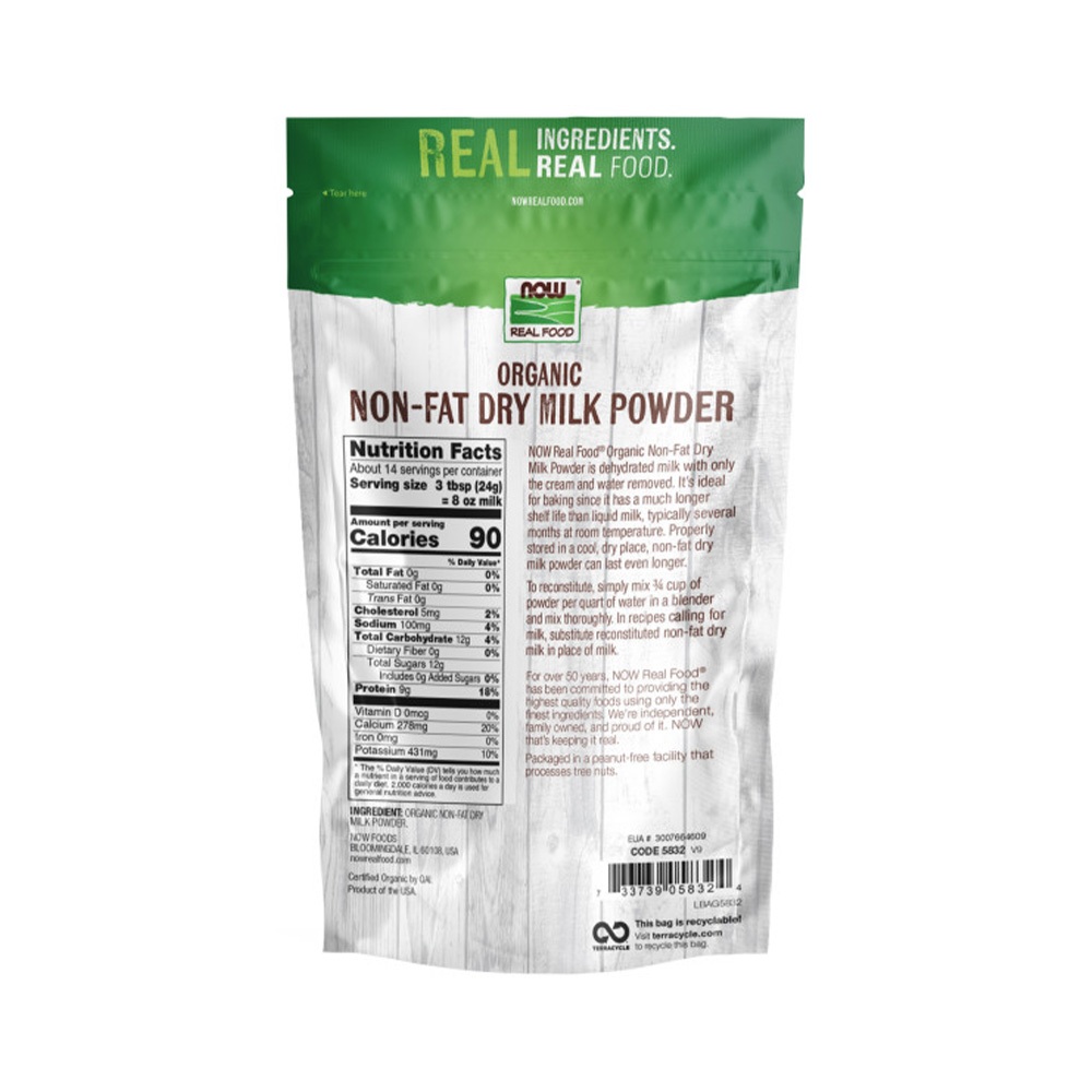 NOW Foods, Organic Non-Fat Dry Milk Powder with Protein and Calcium, (Packaging May Vary) (340g)