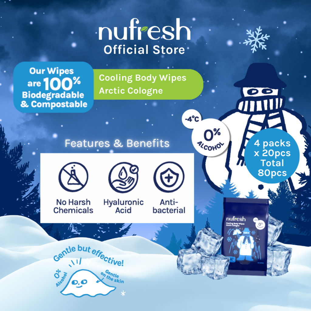 Nufresh Cooling Body Wipes -Arctic Cologne (2 x 20s) (Total 4 packs)