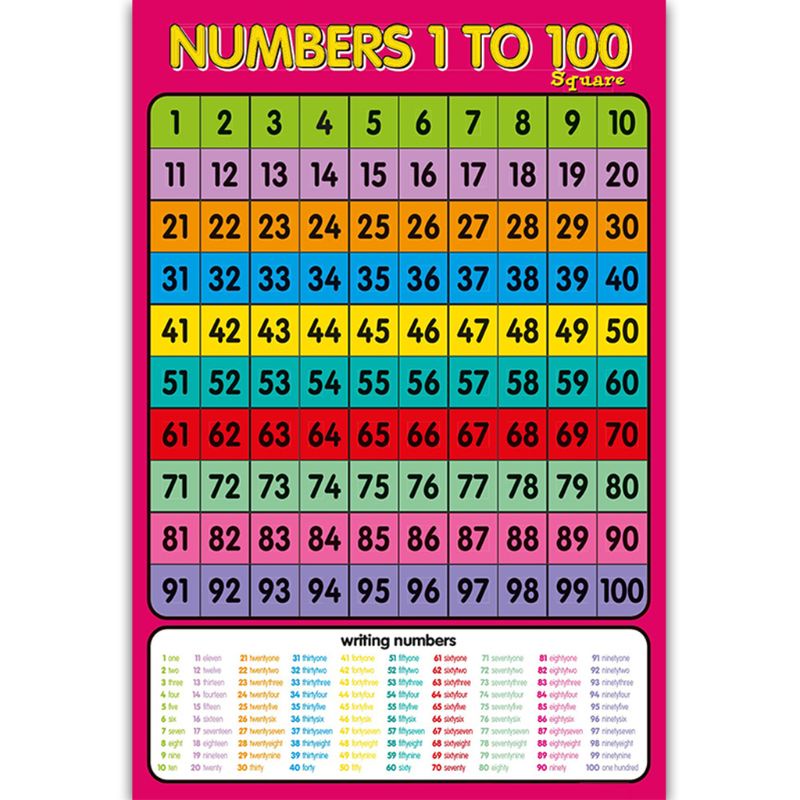 Number 1 - 100 ,Learning To Count-Childrens Wall Chart Educational Maths Educational Learning Poster Charts,Addition Tables,Sums Numeracy ,Childs Poster Art Print WallChart